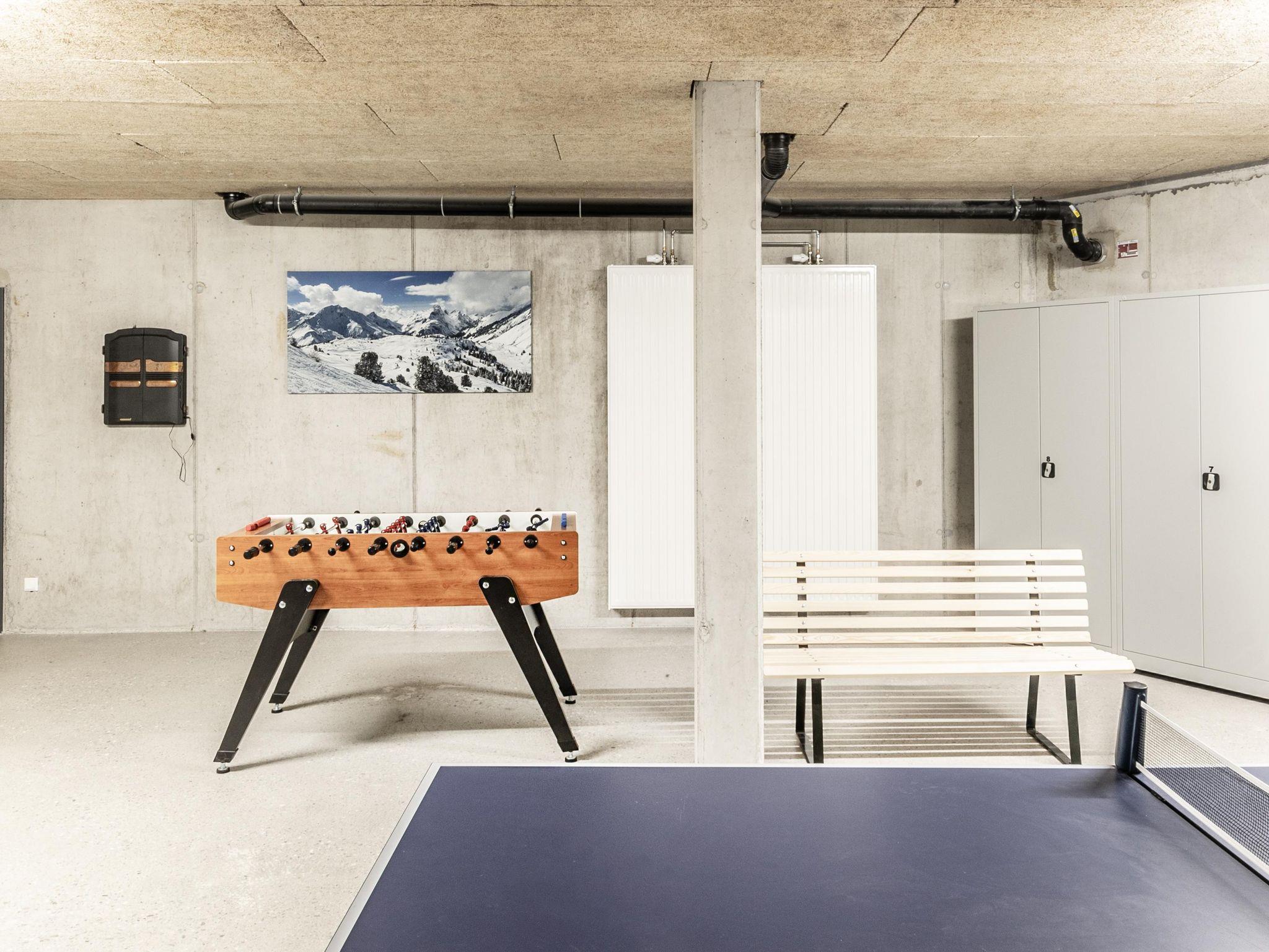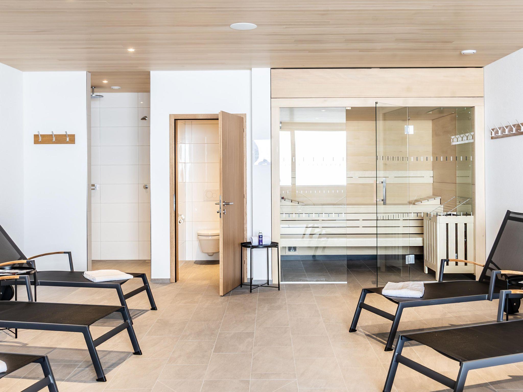Freuen Sie sich nach dem Wandern oder Skifahren auf eine gemütliche Sauna mit Wellnessliegen. Hier können Sie so richtig entspannen. Die gerne noch etwas „Aktion“ haben steht im Aufenthaltsraum ein Kicker, Tischtennistisch und eine Dartscheibe bereit.