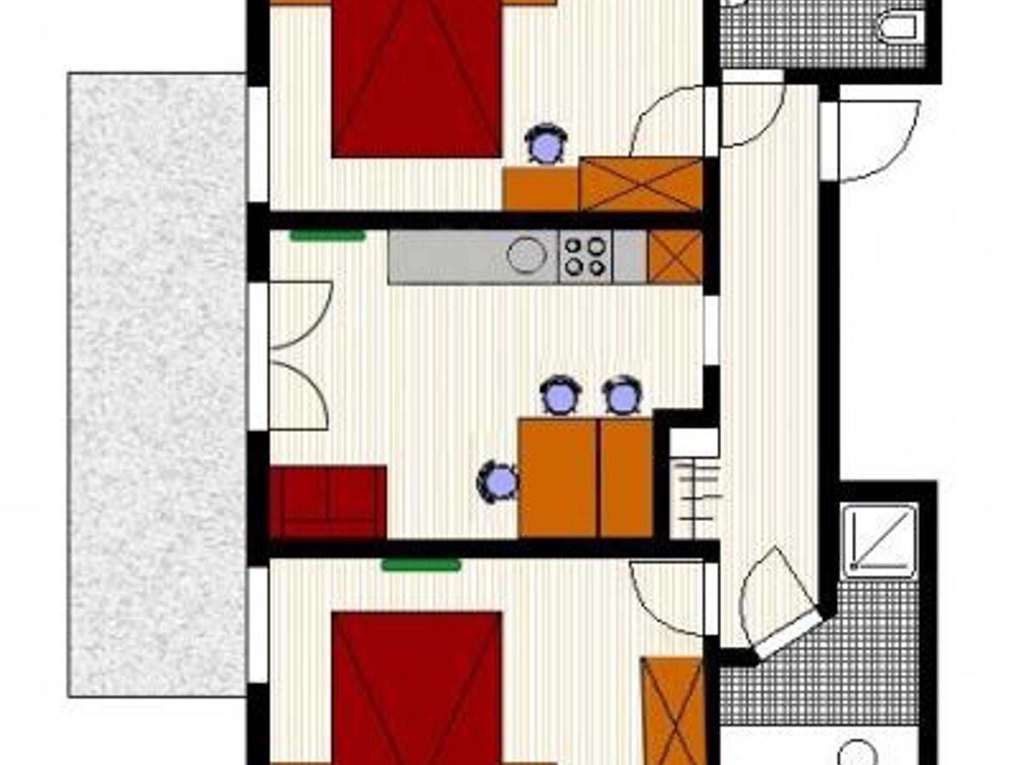 Das Appartement Braunarl befindet sich im 2. Obergeschoss und verfügt über 2 getrennte Schlafzimmer mit Doppelbetten, Badezimmer mit Dusche und Waschtisch (Haarföhn ist vorhanden), separates WC.