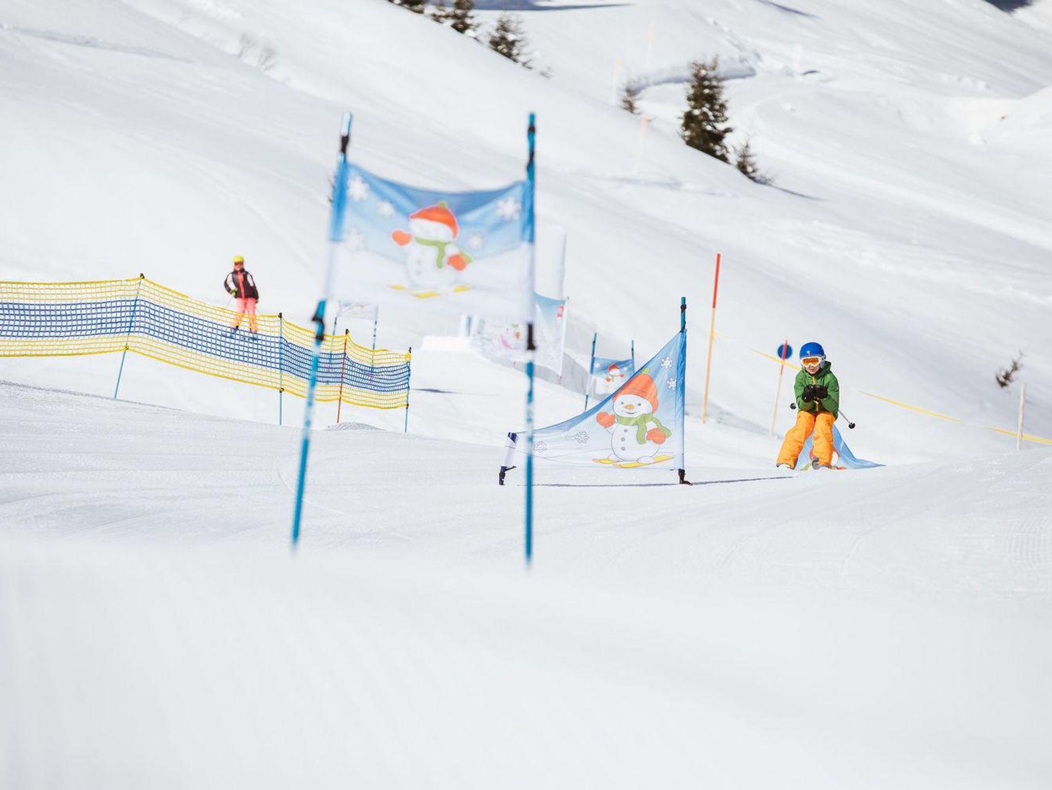 Für große und kleine Kinder gibt es zahlreiche Möglichkeiten, sich im Schnee rund ums Haus so richtig auszutoben!