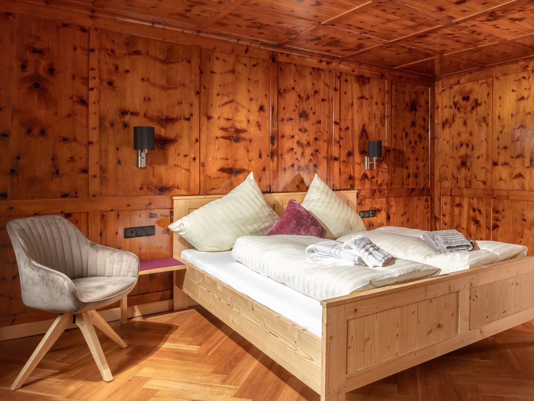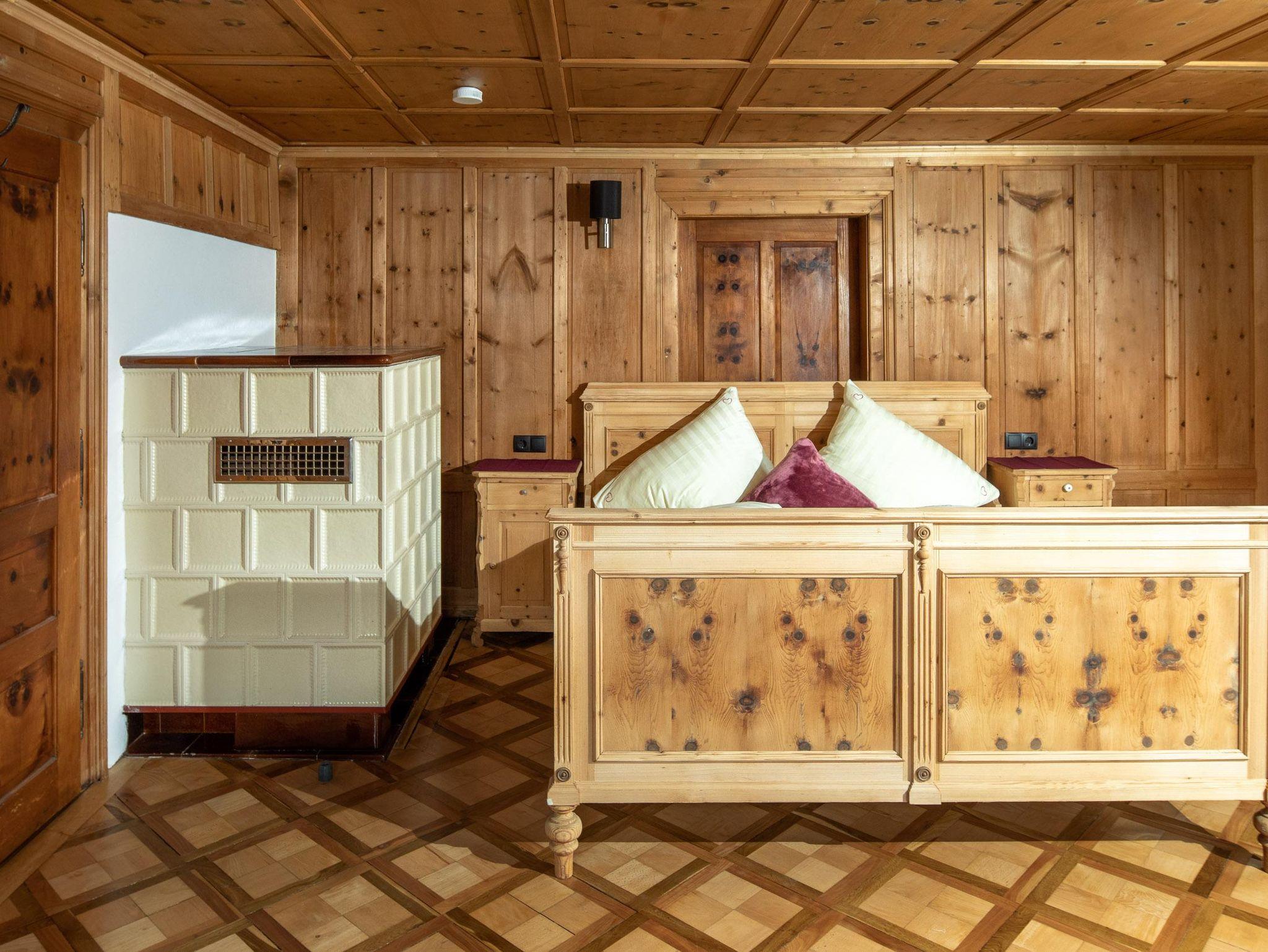 Ihr wohnt auf 2 Etagen, im EG findet Ihr die Küche, separates Esszimmer in einer Montafoner Stube mit TV, 2 Schlafzimmer mit Doppelbett, 1 Dusche/WC, Waschmaschine und 1 separates WC. Im OG befindet sich die Sauna & Infrarotkabine mit Dusche, Ruheraum, 1 Schlafzimmer mit Doppelbett, 2 Schlafzimmer mit je 1 Doppelbett und 1 Einzelbett, 1 Dusche/WC, 1 separates WC und 1 Lesezimmer mit TV und Couch.