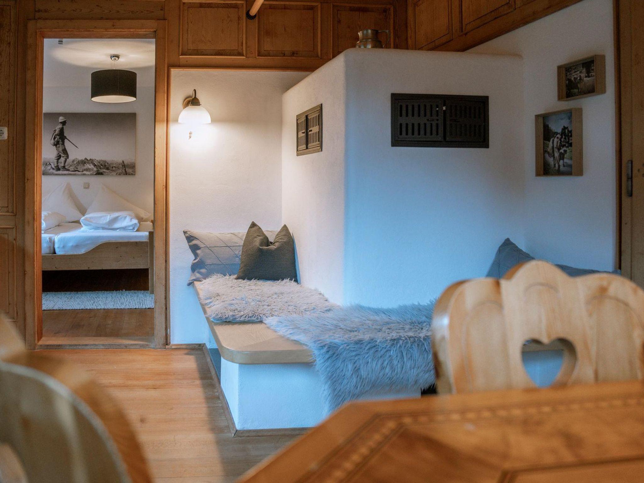 Küche mit Sitzecke und komletter Küchenausstattung, Wohnzimmer mit Sitzecke/TV/Ofen, 3x DZ, 1x Dreibettzimmer (Stockbett), 1x BZ mit Dusche/WC/Fön, 1x BZ mit Dusche/Fön, 1x WC, Ski-/Abstell-/Trockenraum, Skischuhtrockner, TK-Schrank, Bettwäsche, Hand-/Bade-/Geschirrtücher, Kaffefilter und Tabs für Geschirrspüler, Kinderstühle/Babybetten/Absturzgitter, Gartenmöbel, Holzkohlegrill (Sommer)