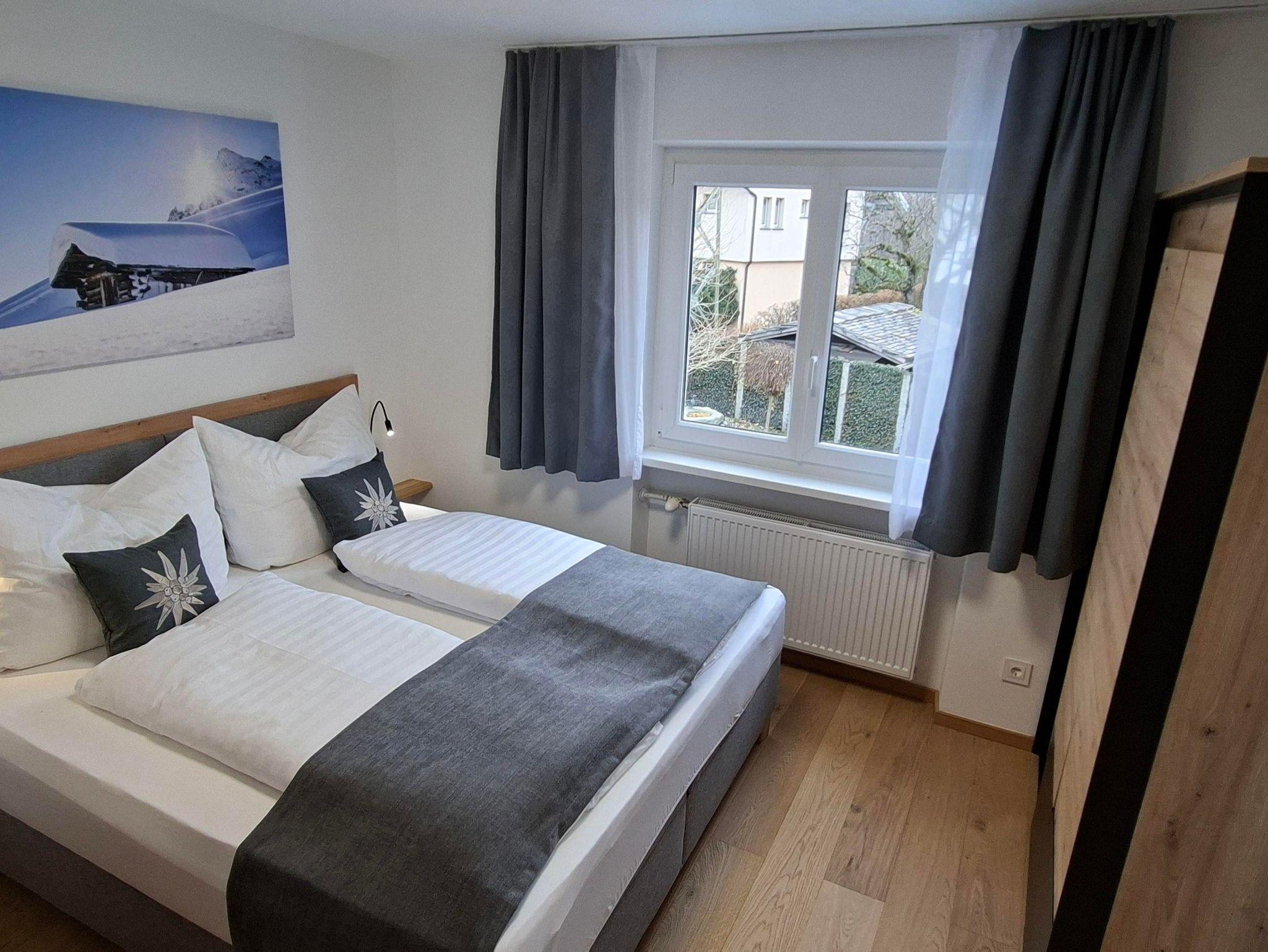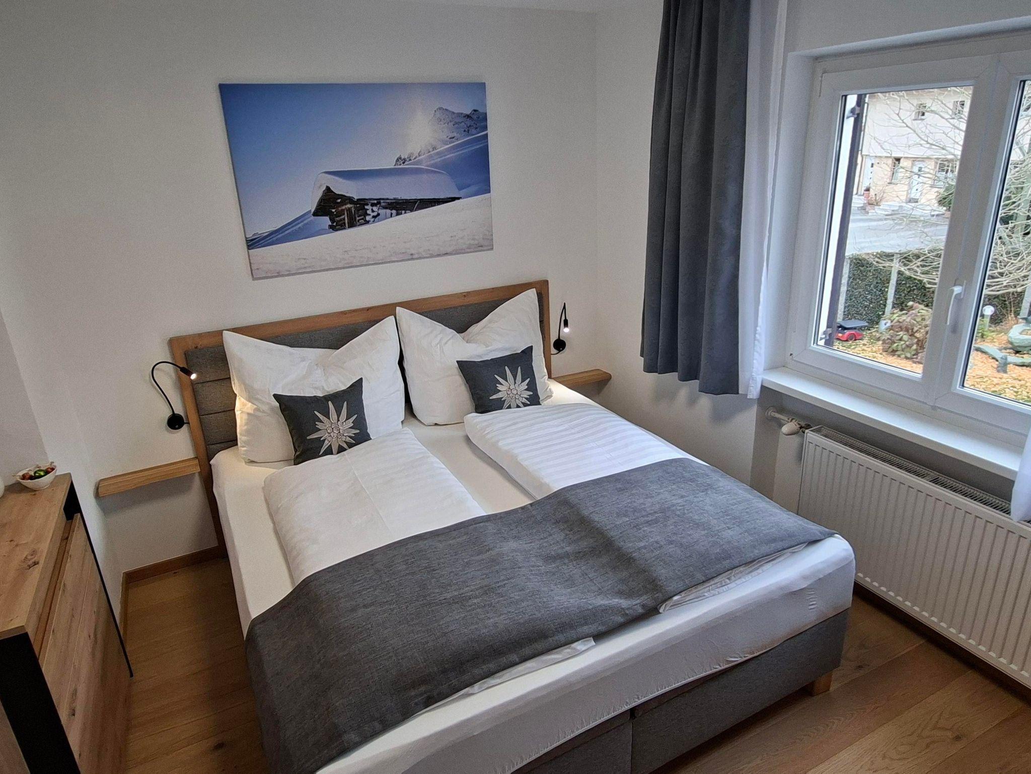 Das Appartement Mittagsspitze verfügt über 2 Schlafzimmer mit Boxspringbett sowie einem eigenen Balkonbereich. Das Wohn- Esszimmer ist mit einer Couch mit Doppelbettfunktion ausgestattet. Das Appartement befindet sich im 1. Obergeschoss.
