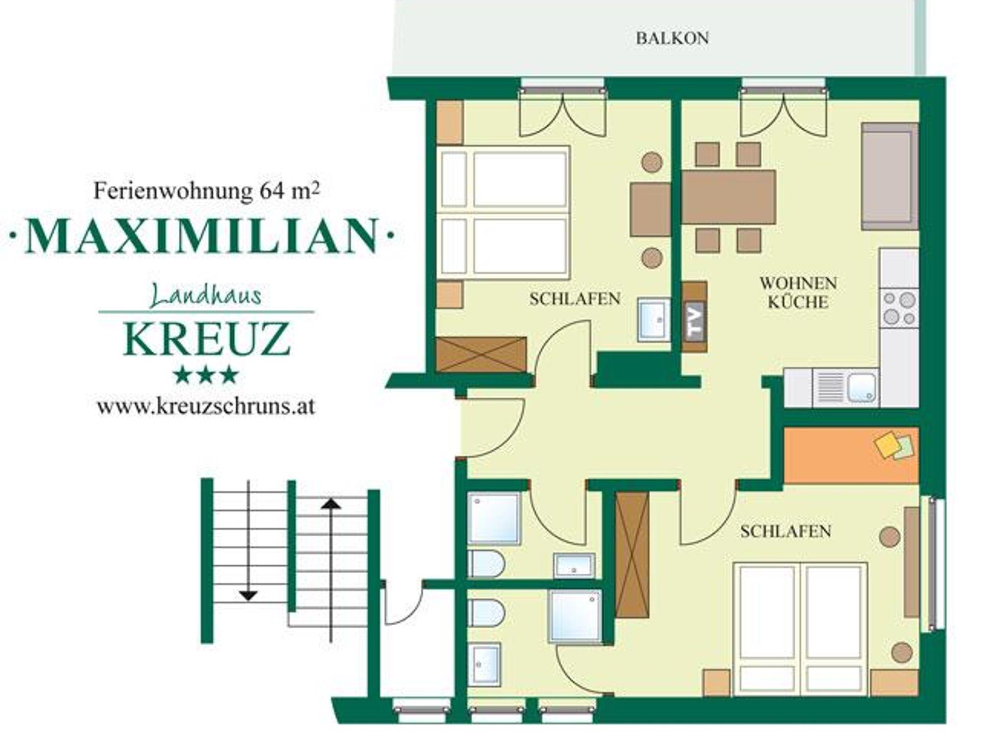 Landhaus Kreuz, Wohnung Maximilian 64 m², 2-4 Personen