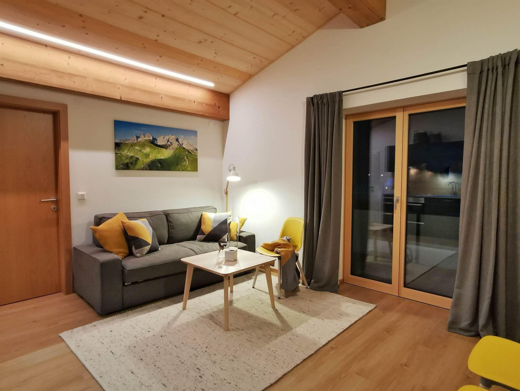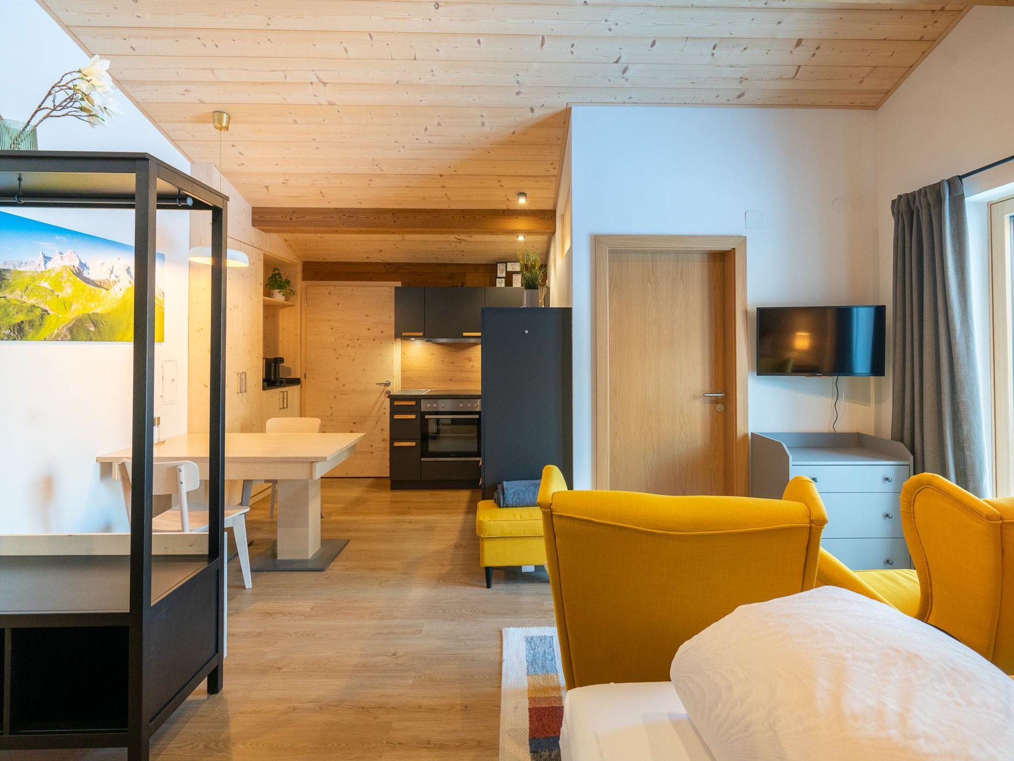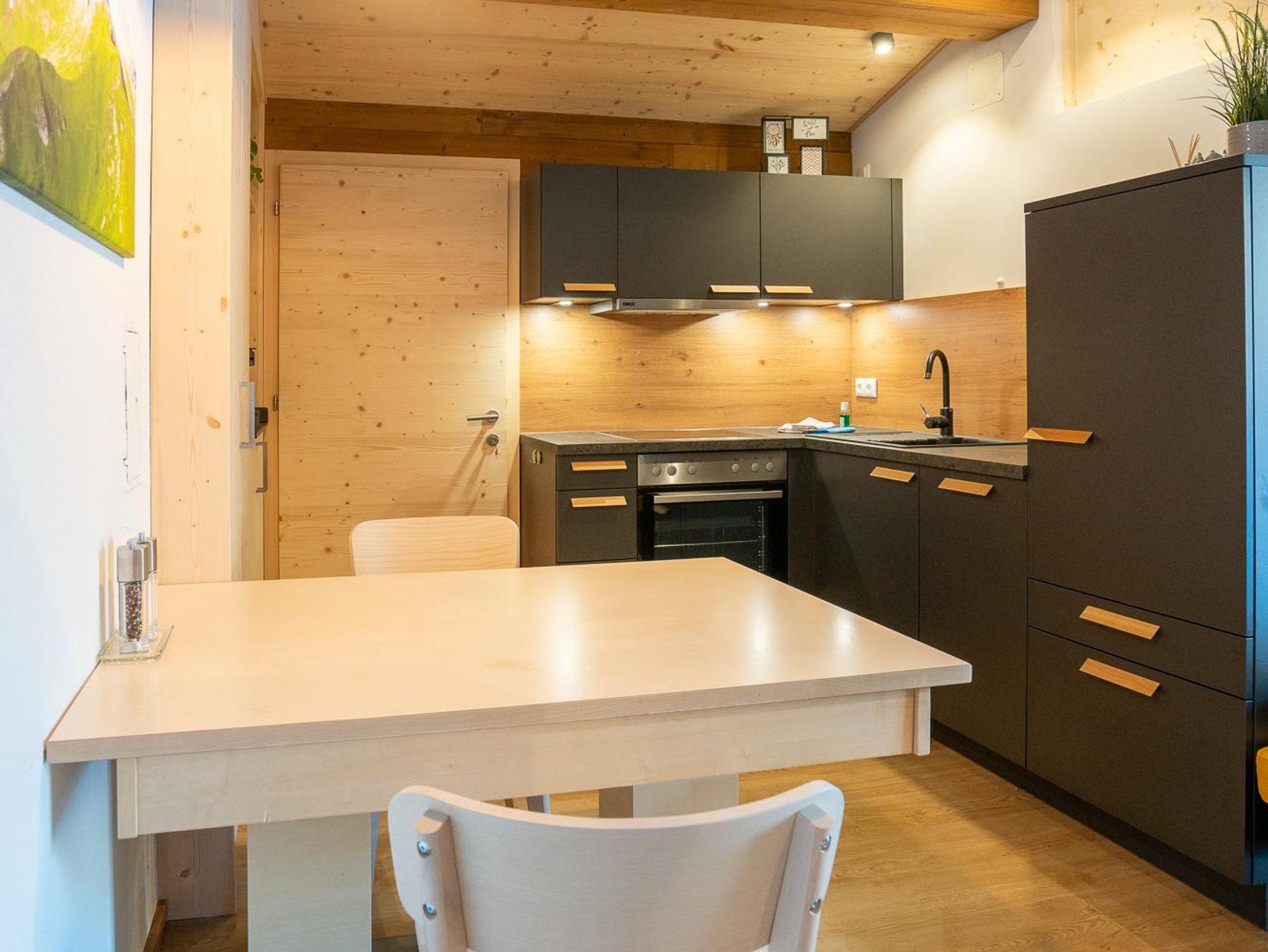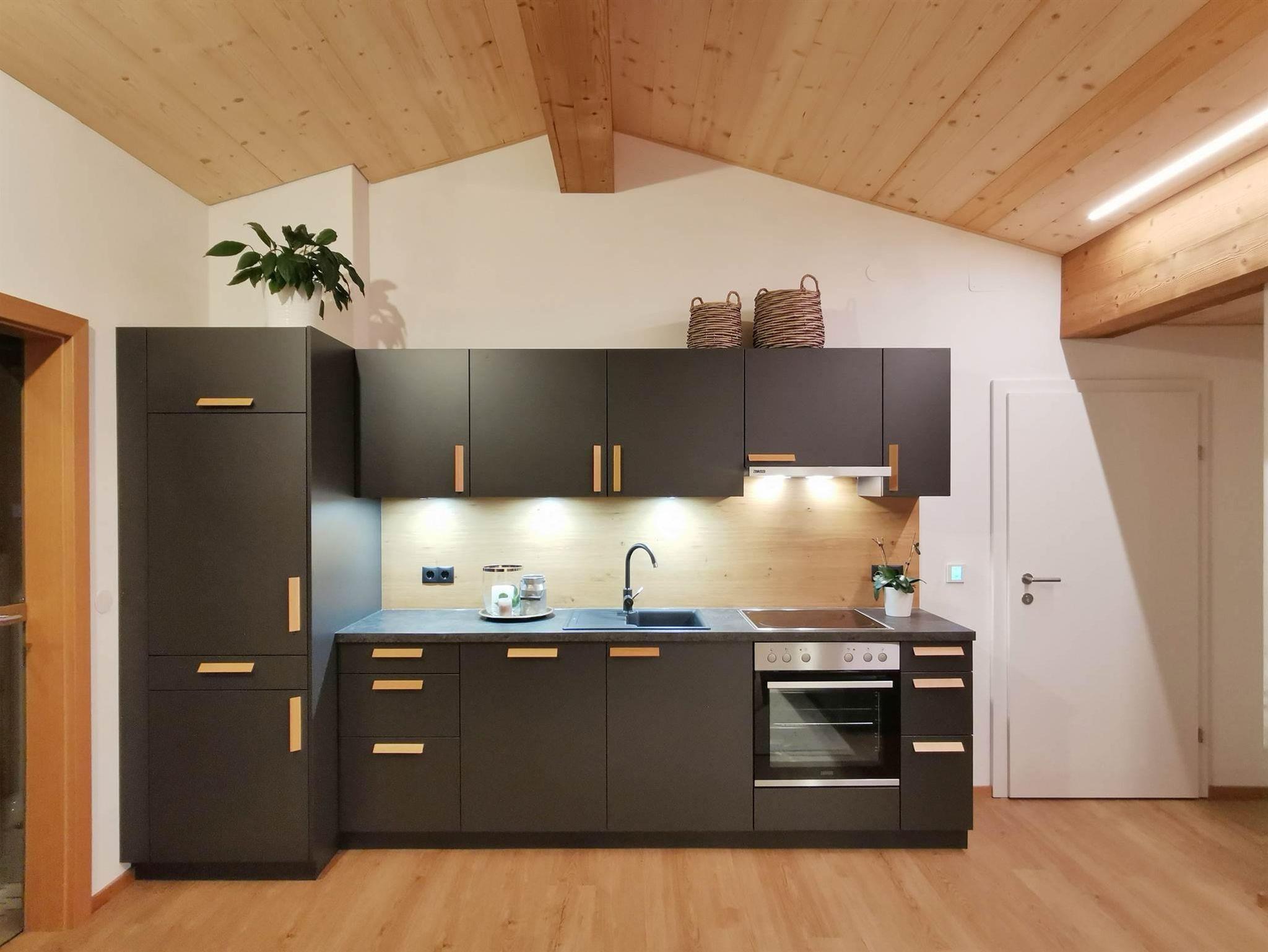 Die ca. 50qm neue Wohnung im DG des Hauses verfügt über einen großzügigen Wohn-/Essbereich mit Küche, zwei Schlafzimmern und einem Bad mit DU und WC. Kinderstuhl, TV, WLAN & Skikeller, Bettwäsche & Handtücher sind vorhanden. Die Küche ist mit einem E-Herd/Backofen, Geschirrspüler, Kühlschrank mit Tiefkühlfach, Toaster, Wasserkocher, Mixer, Pads-Kaffeemaschine & Filter-Kaffeemaschine ausgestattet.