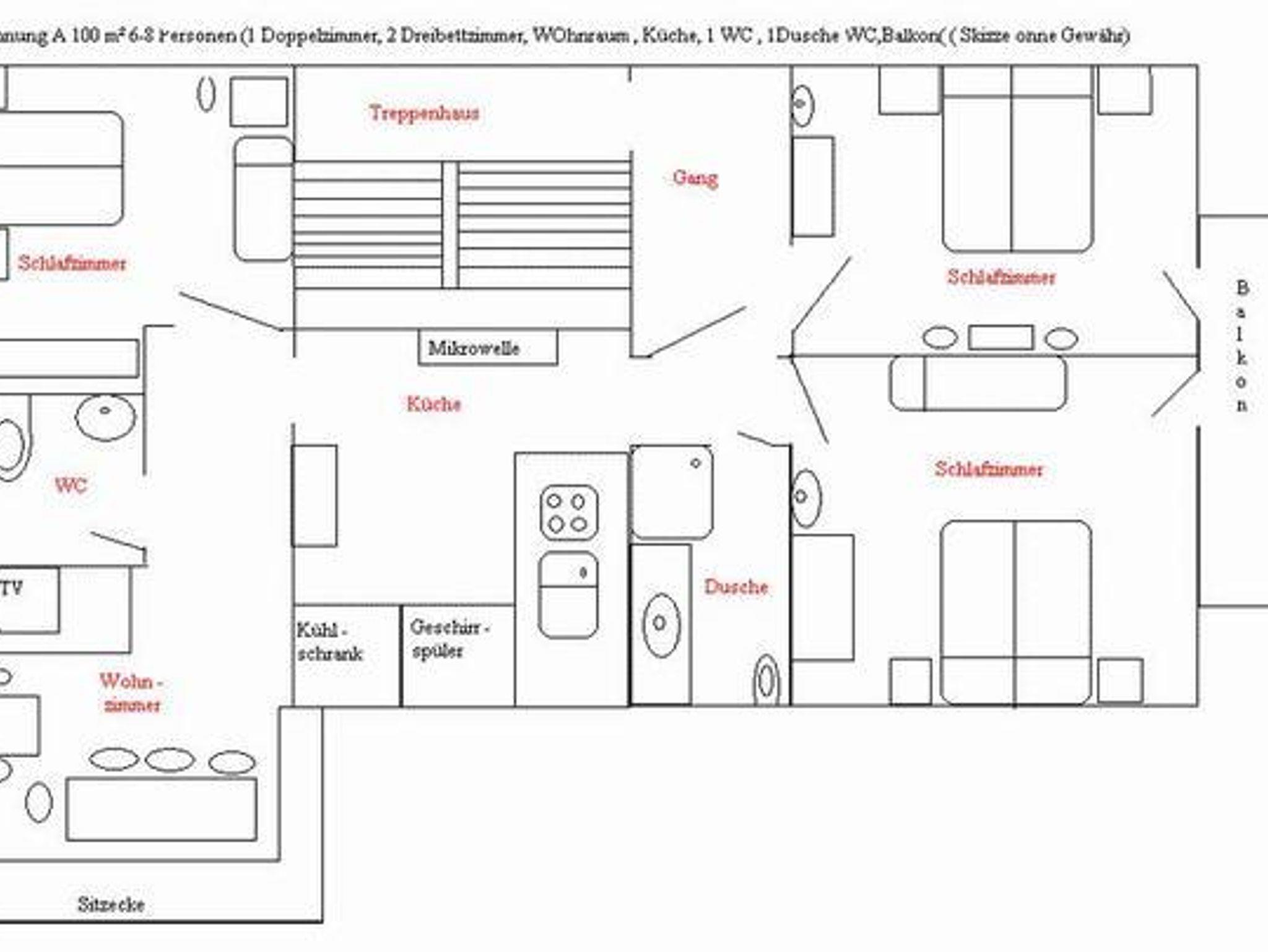 Ferienwohnung für 1-6 Personen, 100 m², Küche, Wohnraum, 3 Schlafräume, 1 Du/WC, 1 seperat WC, 2 Schlafzimmer sind mit zusätzlichem Waschbecken ausgetattet, Balkon, Geschirrspüler, Sat-TV, Mikrowelle, Wasserkocher, Filterkaffeemaschine, Bettwäsche und Handtücher. Gitterbett auf Wunsch. Haustiere nicht erlaubt. Die Ferienwohnung ist rauchfrei.