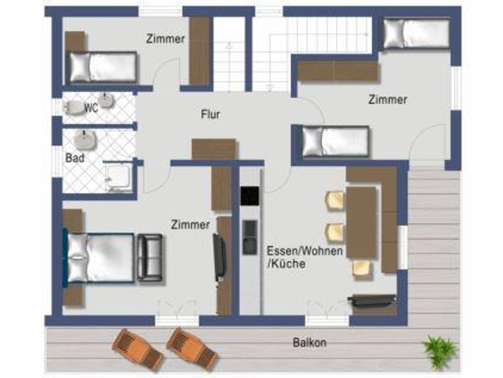 Wohnung EG max. 5 Betten 1 Schlafsofa