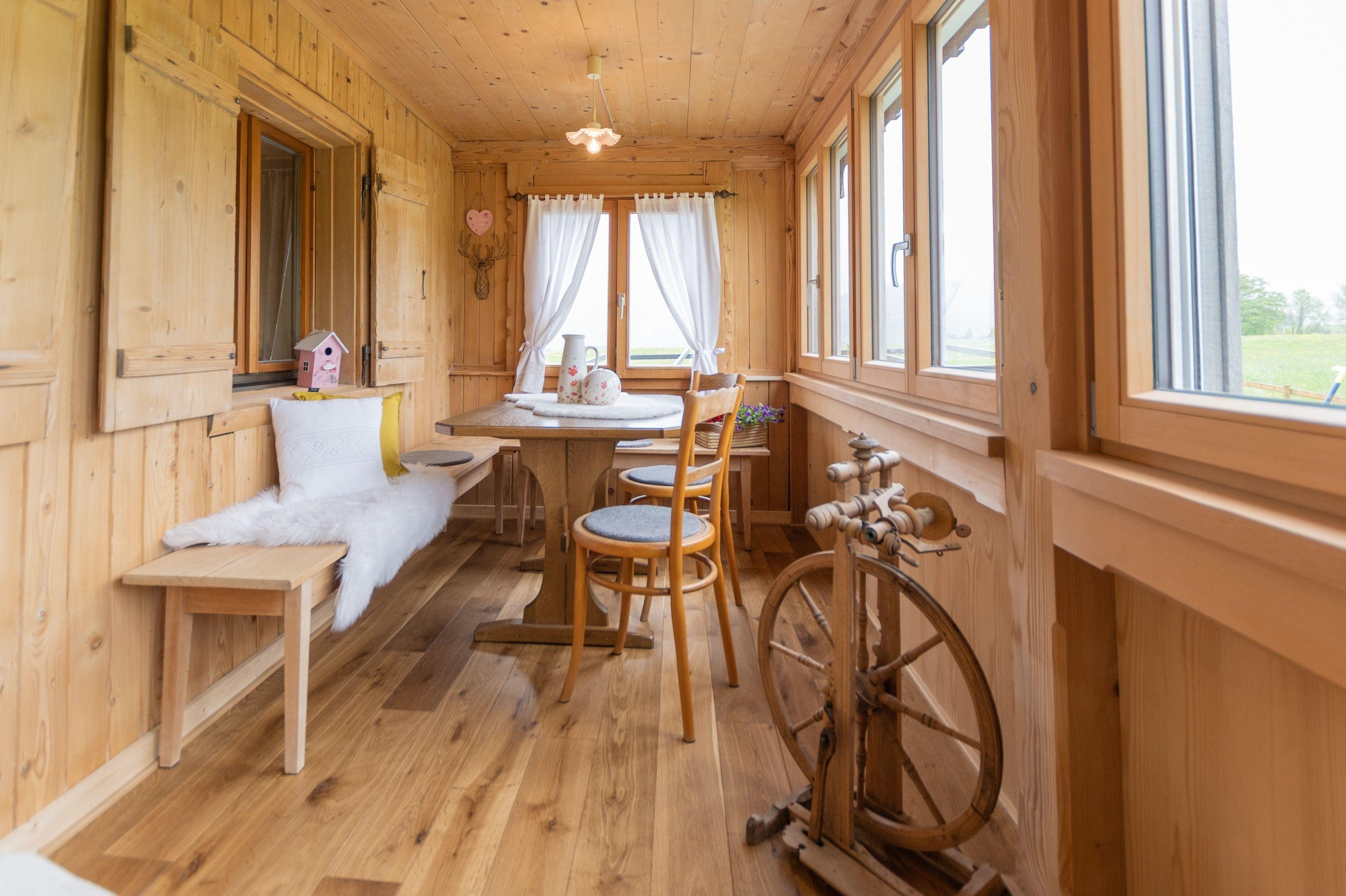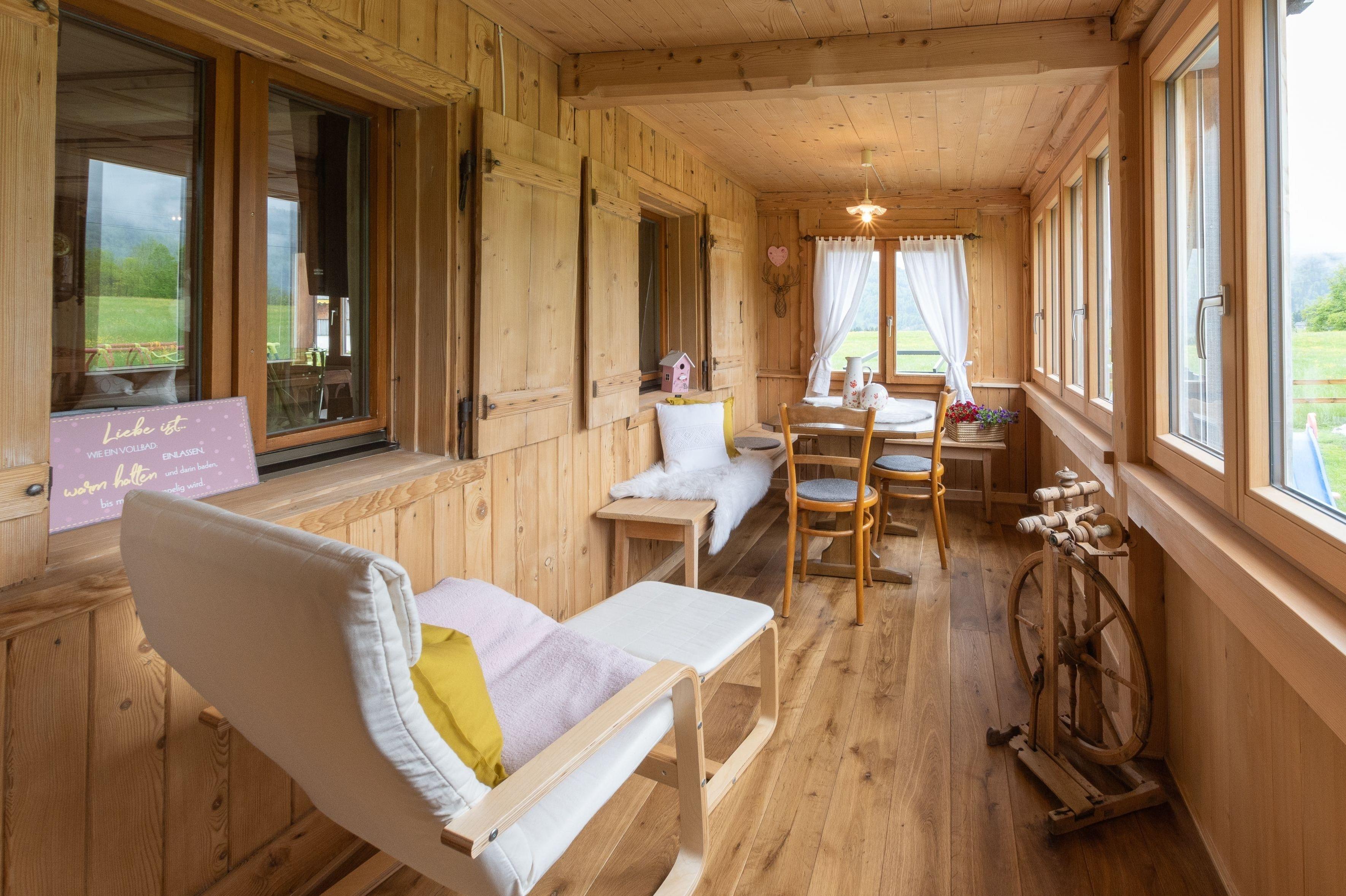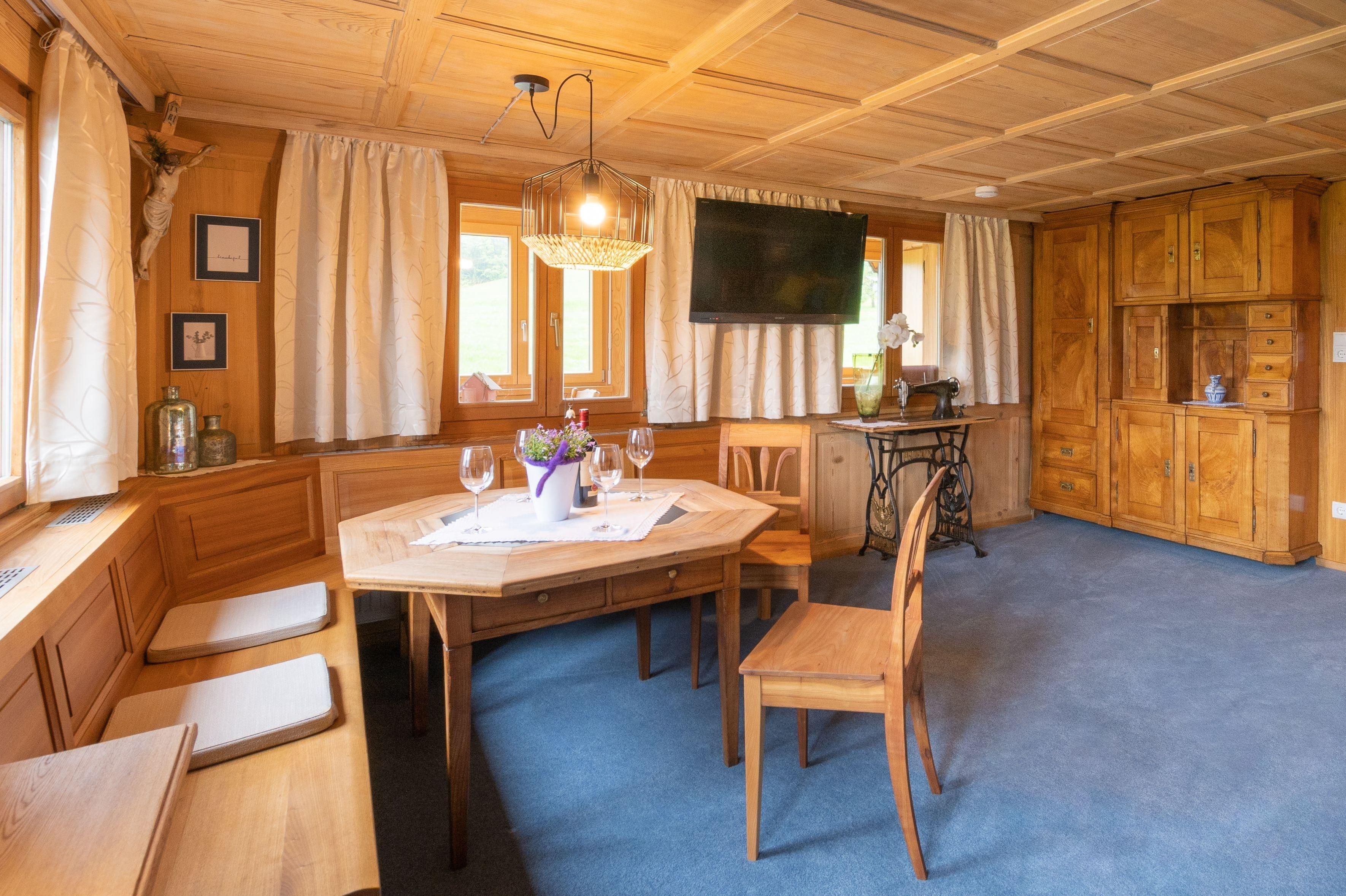 Neue, helle, freundliche Wohnung mit Küche, Wohnzimmer (alte Wälderstube mit Kachelofen), 4 Schlafzimmer, 1 Badezimmer sowie einem traumhaften Schopf (Wintergarten).