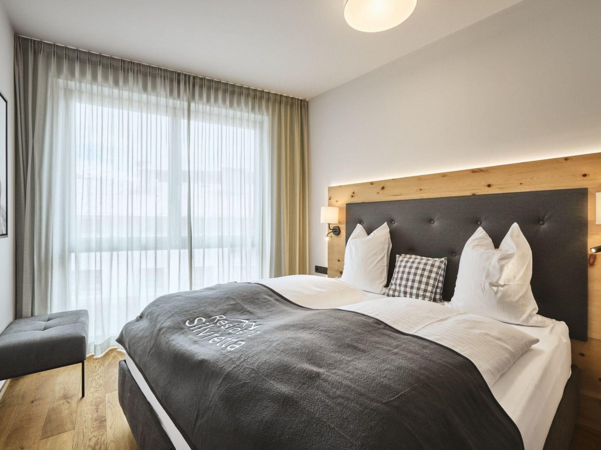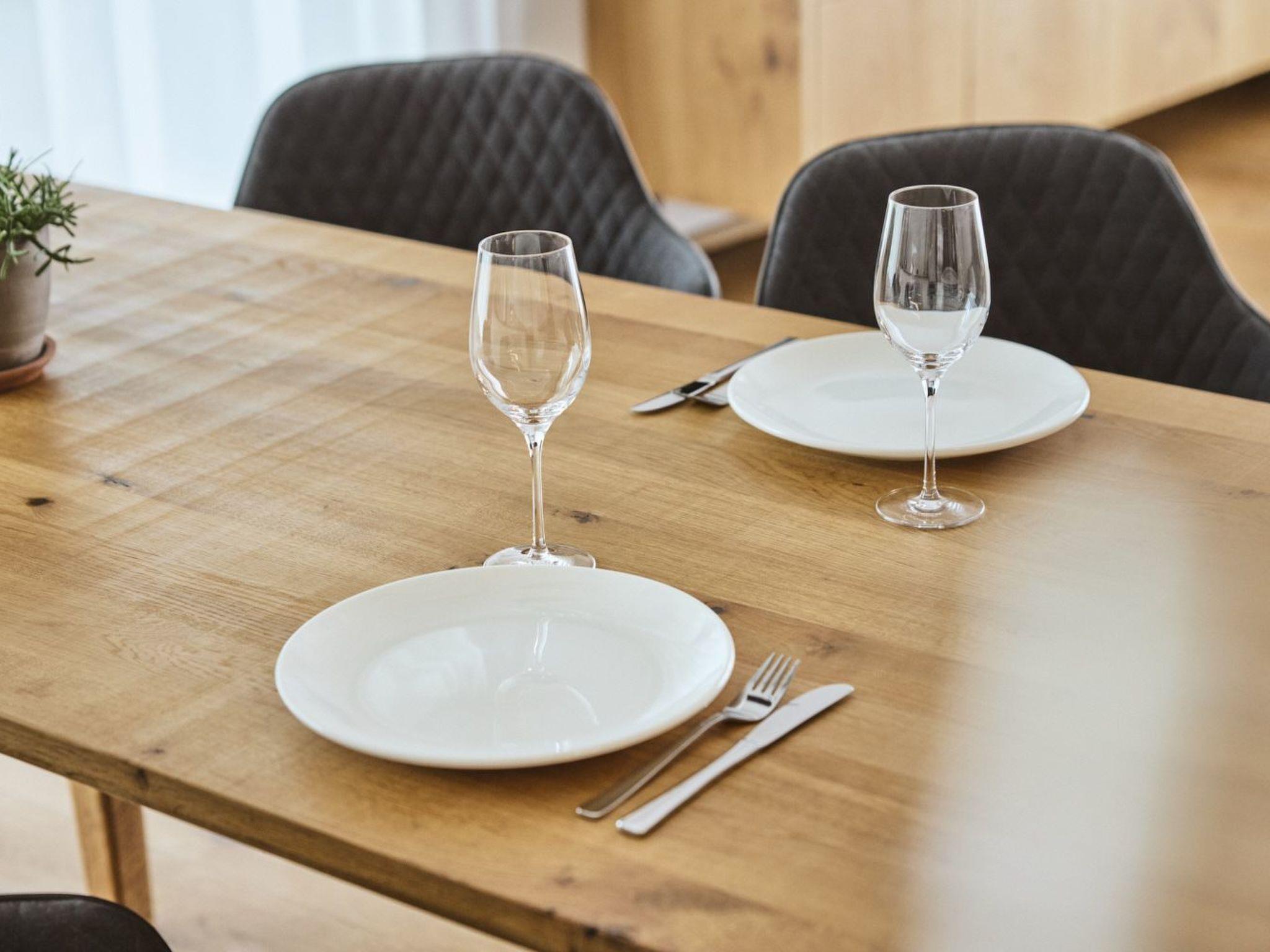 The spacious living and dining area with open-plan kitchen forms the centre of the flat. A double bedroom with box-spring bed with Swiss stone pine back panel (ensures a lower heart rate and longer recovery phase during sleep), a large bathroom with rain shower and double washbasin, a separate WC and a fully-fledged sofa bed (slatted frame and spring mattress) offer comfortable space for 2 - 4 people (couples, families, friends). The flat has a large wardrobe area and ample storage space in the built-in cupboards.