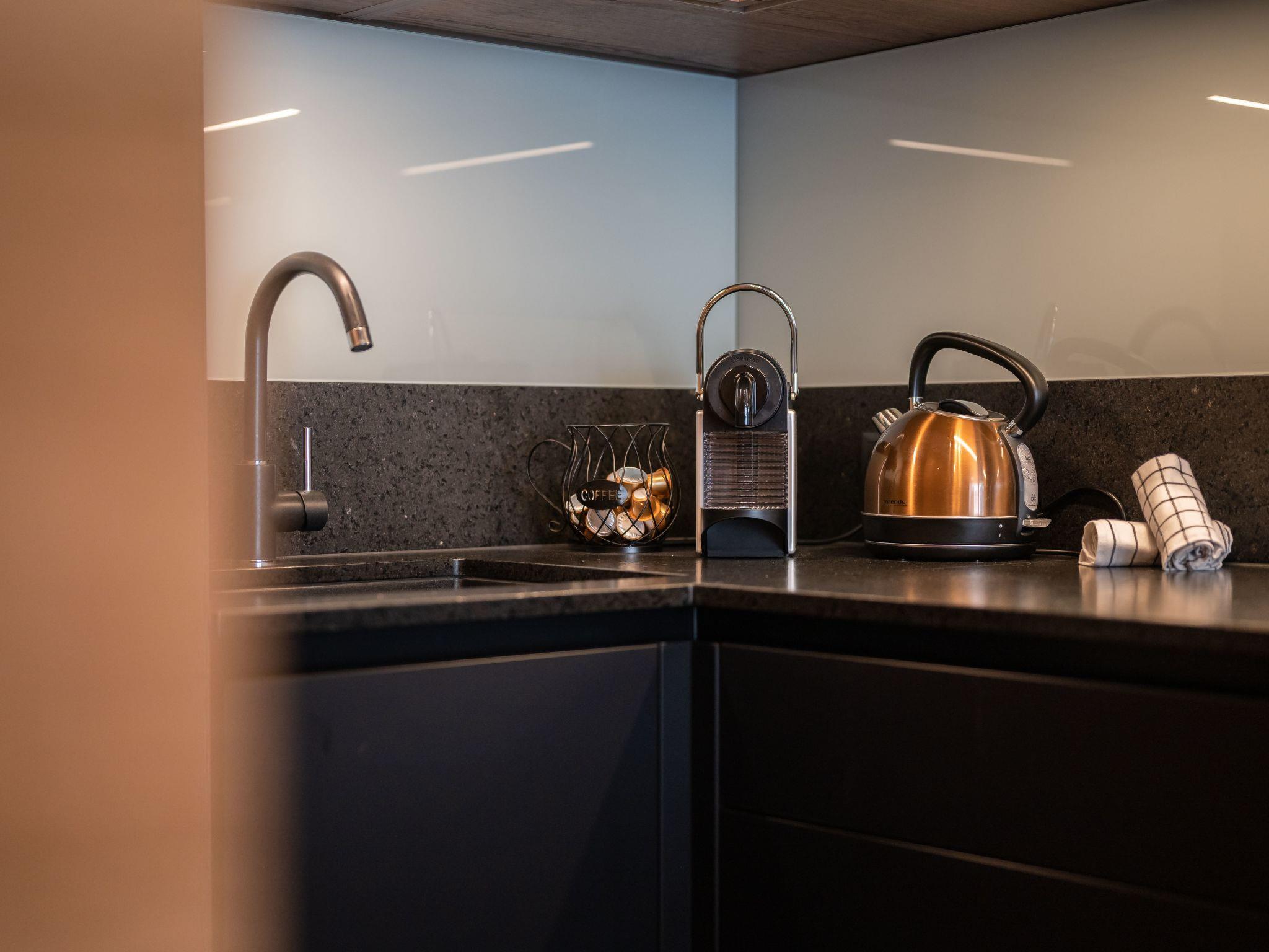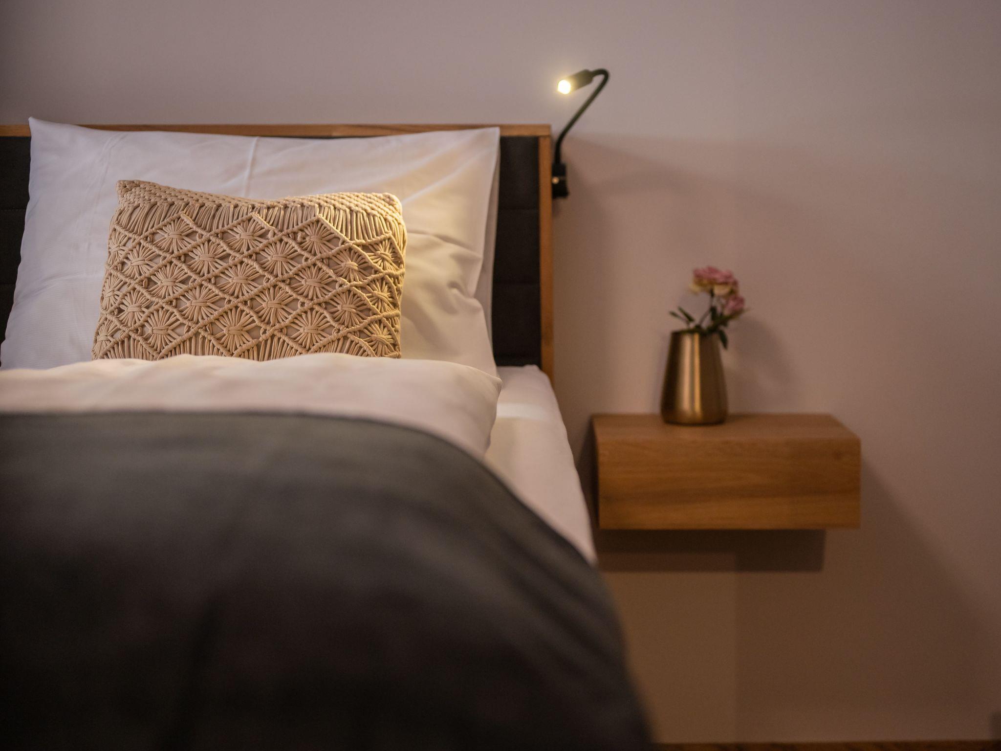 Inside the flat you will find a harmonious combination of comfort and functionality. Underfloor heating provides cosy warmth throughout the flat, while the kitchen is equipped with modern amenities such as a kettle and dishwasher. A washing machine and tumble dryer are available for communal use, allowing you to enjoy a longer stay without any worries. This lovingly designed holiday flat makes it easy to feel at home.