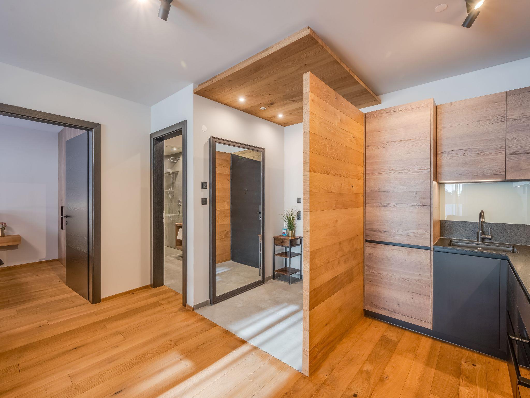 The area surrounding the holiday flat has something for everyone. The nearby lake, just 400 metres away, is ideal for water sports enthusiasts and those seeking relaxation. For winter sports enthusiasts, the ski bus stop is just 958 metres away, while the ski school can be reached in around one kilometre. This location therefore promises a wide range of leisure activities in both summer and winter.