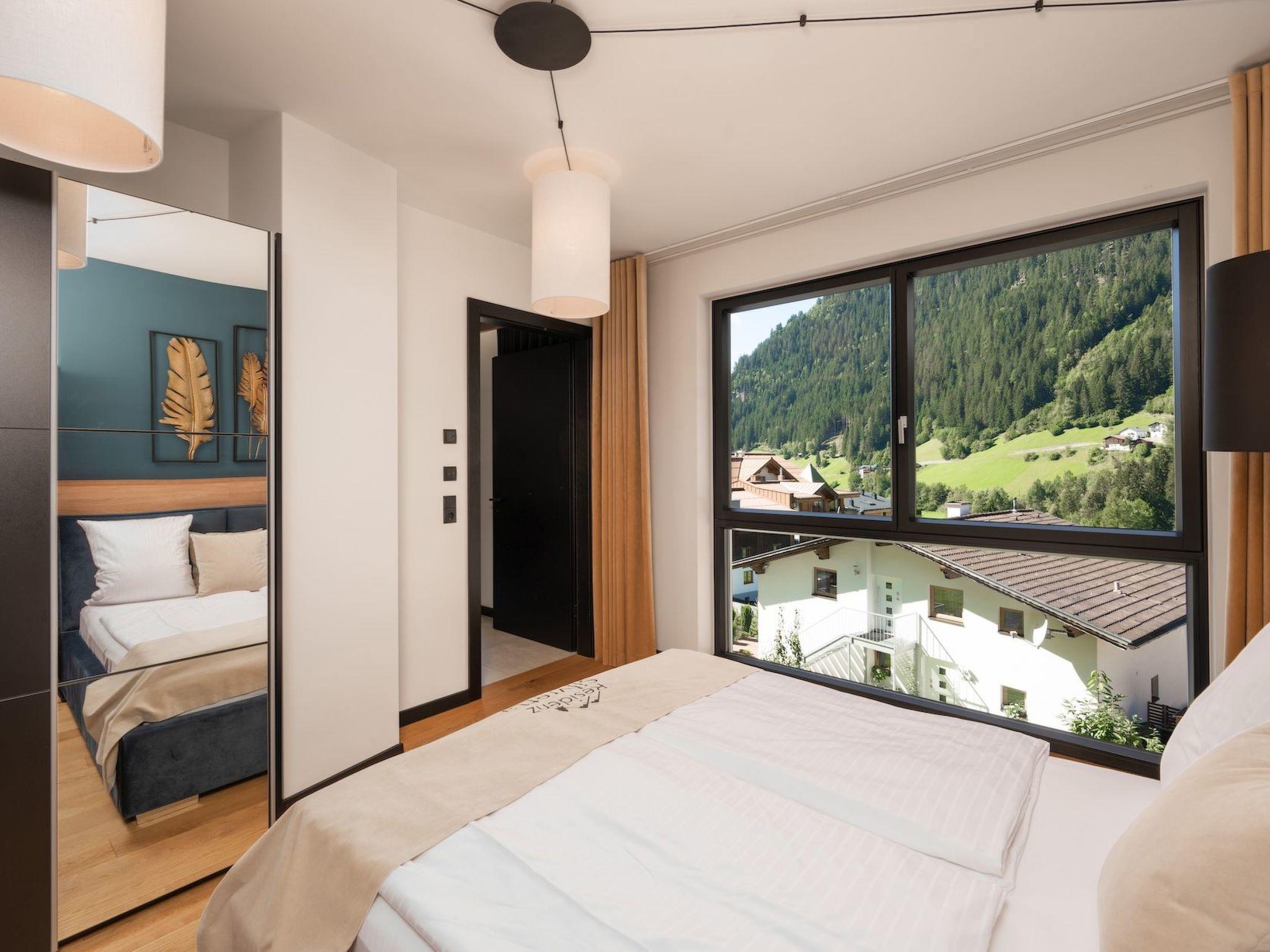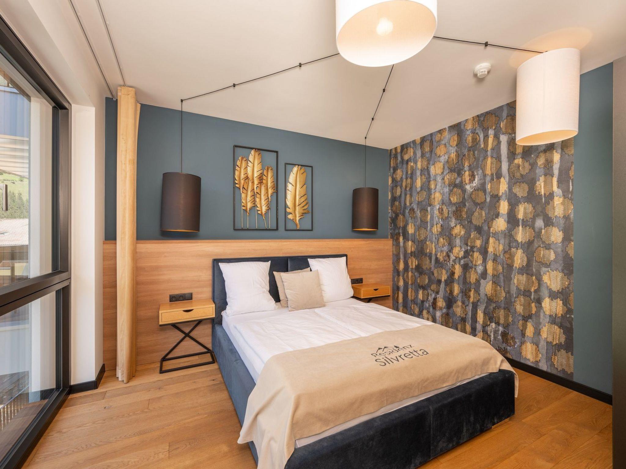 The spacious living area with a large L-shaped sofa and a stylish armchair is the perfect place to relax and enjoy the wonderful alpine atmosphere. The living area flows into the spacious dining area, where the tables can seat up to eight guests on comfortable chairs. The elegant, modern kitchen is fully equipped and offers everything you need to prepare meals for your family and friends.