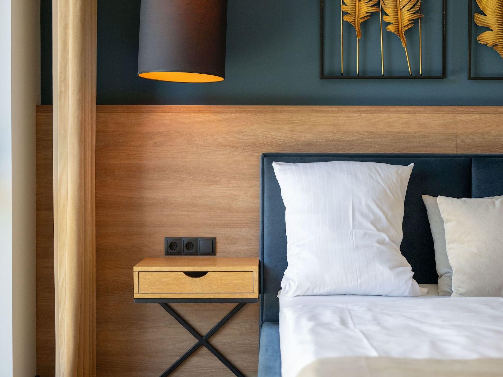 The colourful, modern flat is furnished with high-quality furniture and decor in a unique, glamorous style with a touch of light wood.