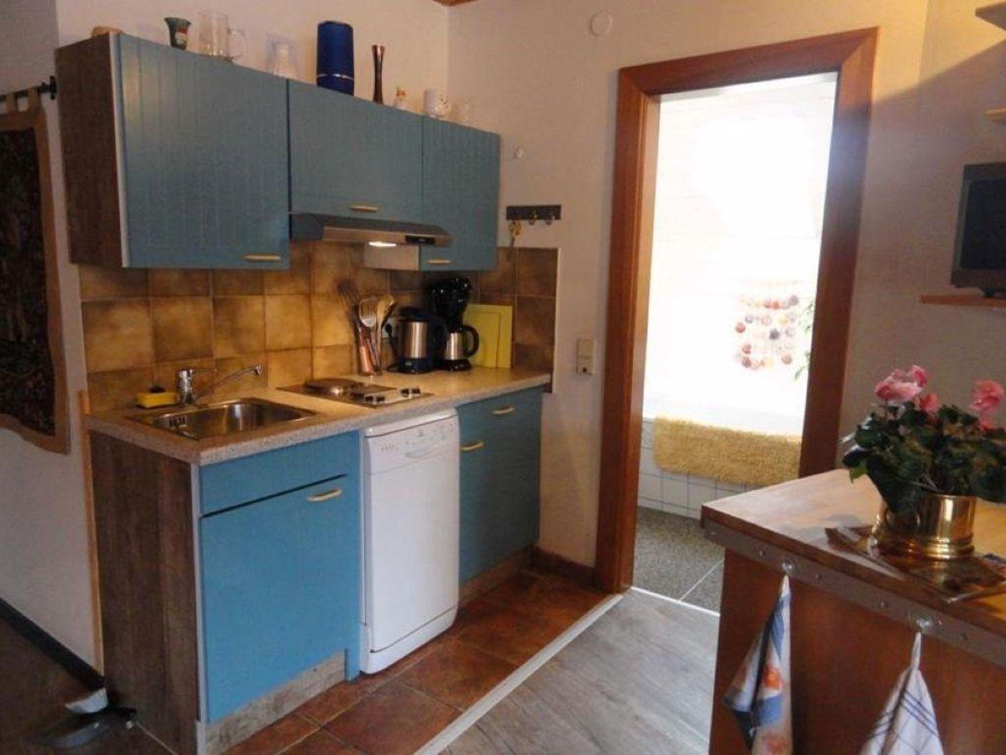 59 m² im 1. Stock 2-4 Personen 1 Schlafzimmer 1 Wohnzimmer mit Auszieh - Doppelliege Küchenblock mit Geschirrspüler, Mikrowelle, Wasserkocher und Handmixer SAT-TV Bad / WC kl. Abstellraum Südbalkon überdacht