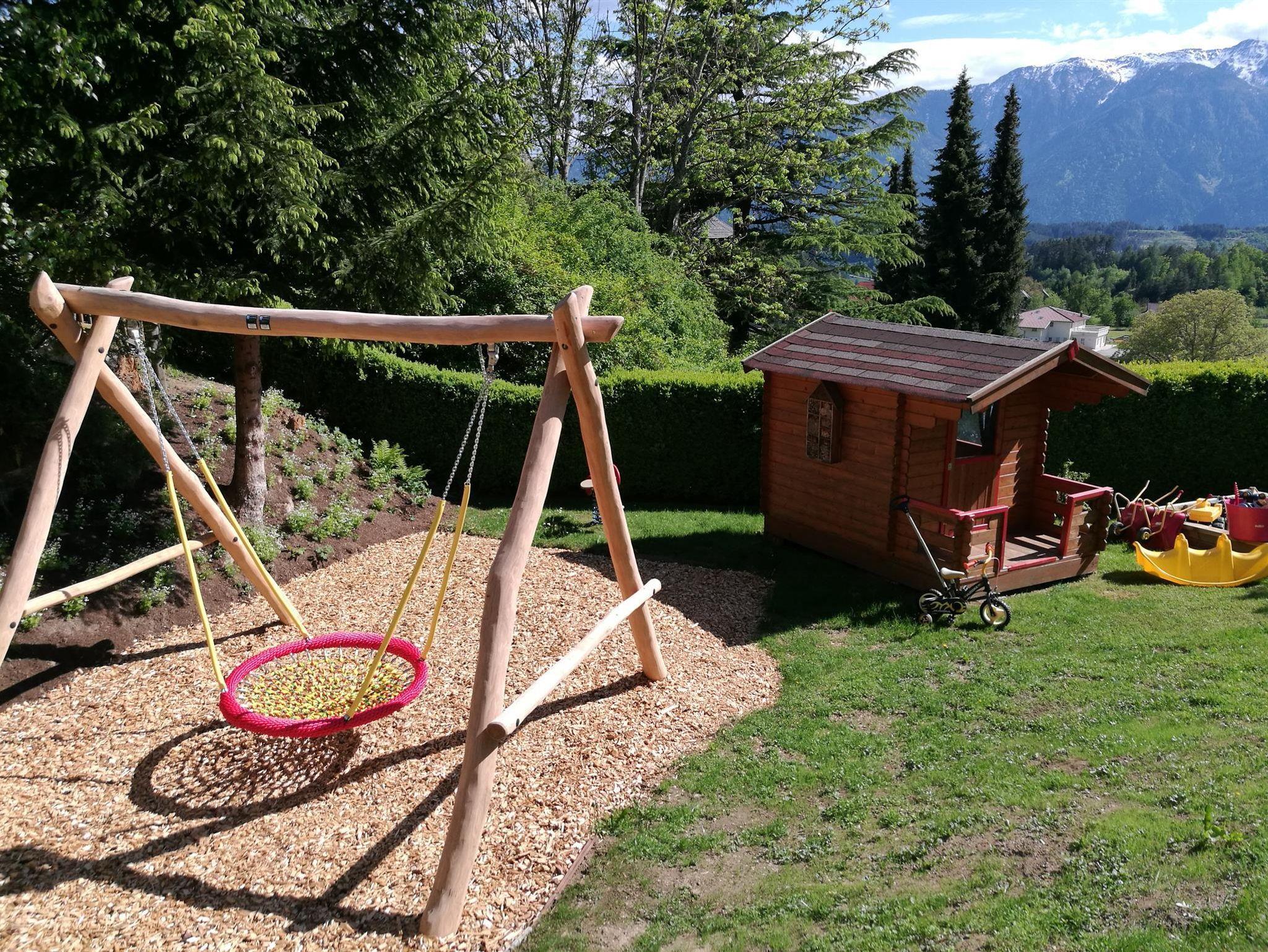 Einen eigenen Bereich gibt es für die Kinder, der Spielplatz ist mit Spielhäuschen, großer Nestschaukel und Sandkiste ausgestattet. Im Haus befindet sich das gut ausgestattete Spielzimmer - Treffpunkt für große und kleine Kids.