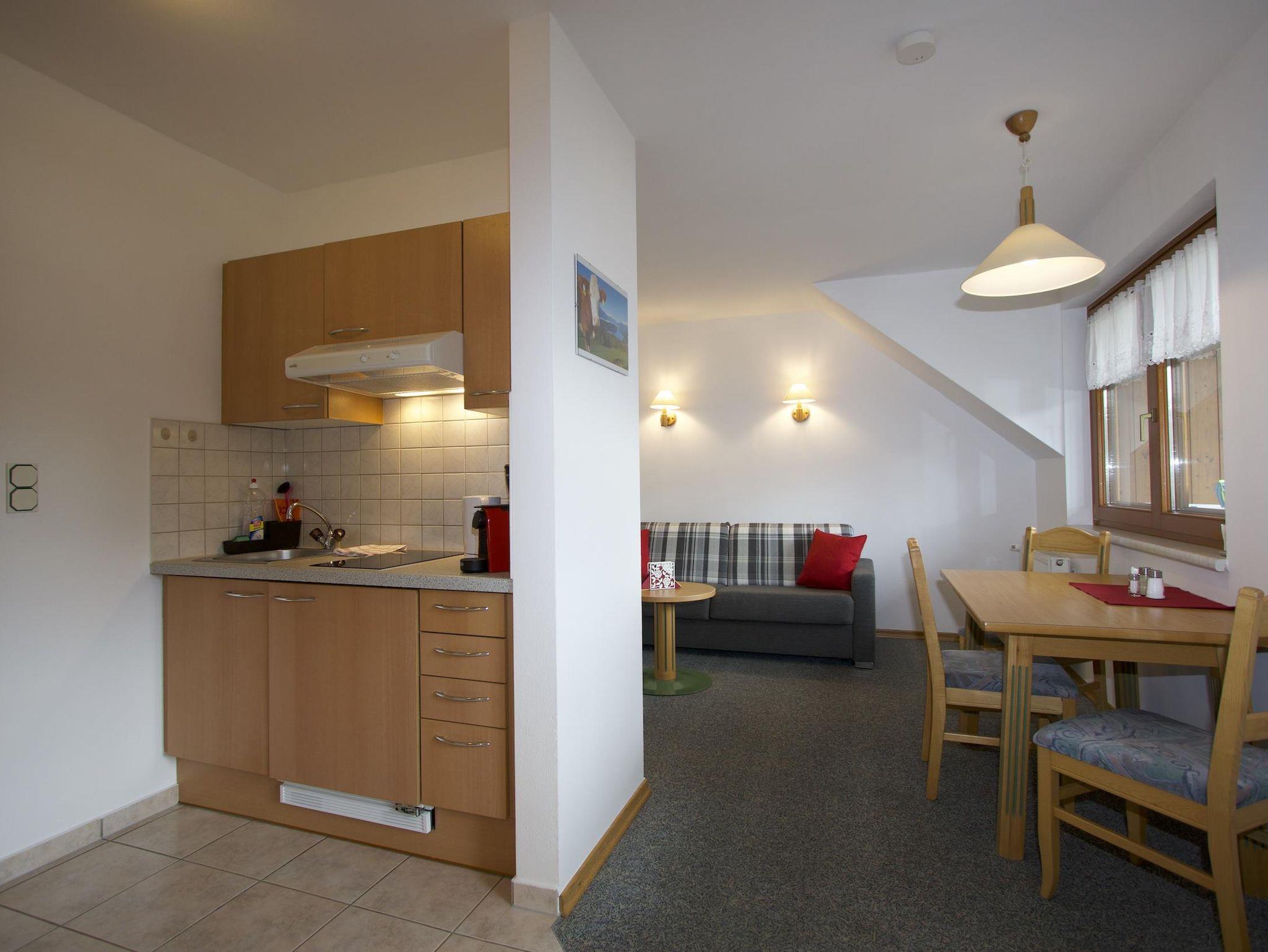 Appartement „Mirnock“ ca. 39 m2 Wohnung für zwei bis vier Personen im 1. Obergeschoss, 1 Schlafraum, 1 Wohn-Schlafraum, Kochgelegenheit, Nespressomaschine, Dusche und WC; SAT-TV; südseitig, großer Balkon;