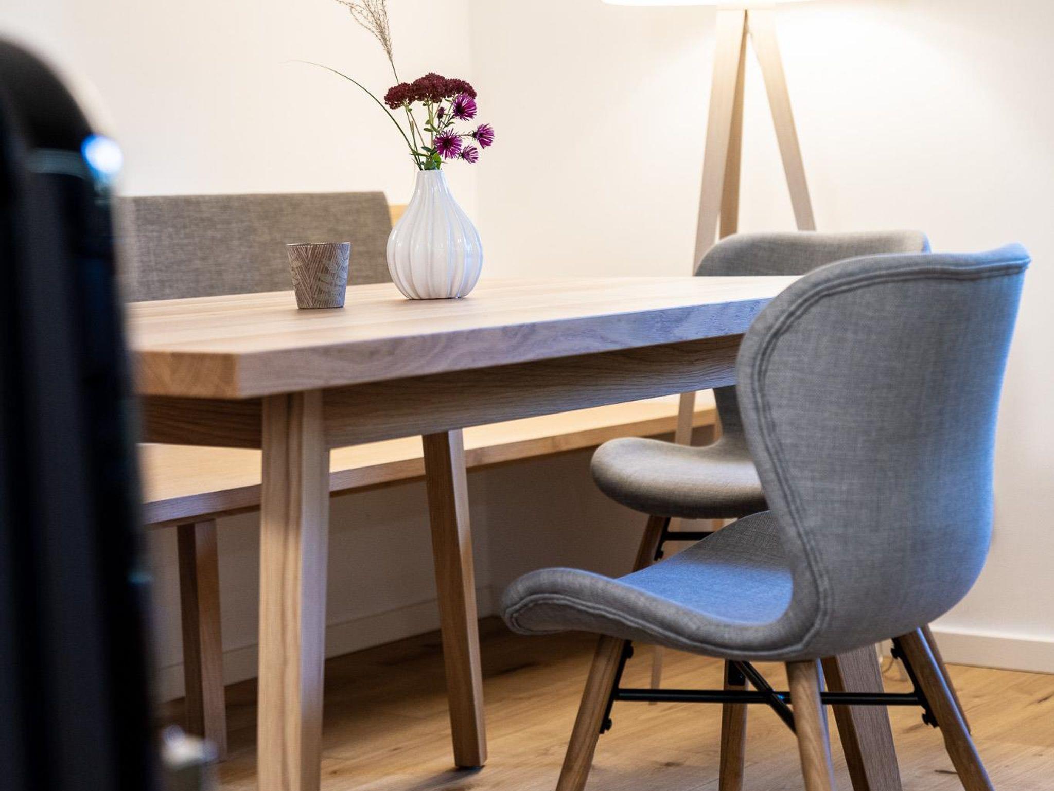 Sicher auch deshalb, weil in ihnen unsere Liebe fürs gutes Wohnen zu spüren ist – überlegt mit Herz und Hirn und ausgeführt mit den besten Handwerkern der Region. Denn, so sind wir überzeugt: Proportionen, Materialien und auch Funktionalität wirken auf Körper, Geist und Seele. Eines haben unsere Ferienwohnungen alle gemein: Vollholz- möbel, Holzböden, klare Linien, und die Ausrichtung aller Zimmer zum Dorf oder in den Garten.