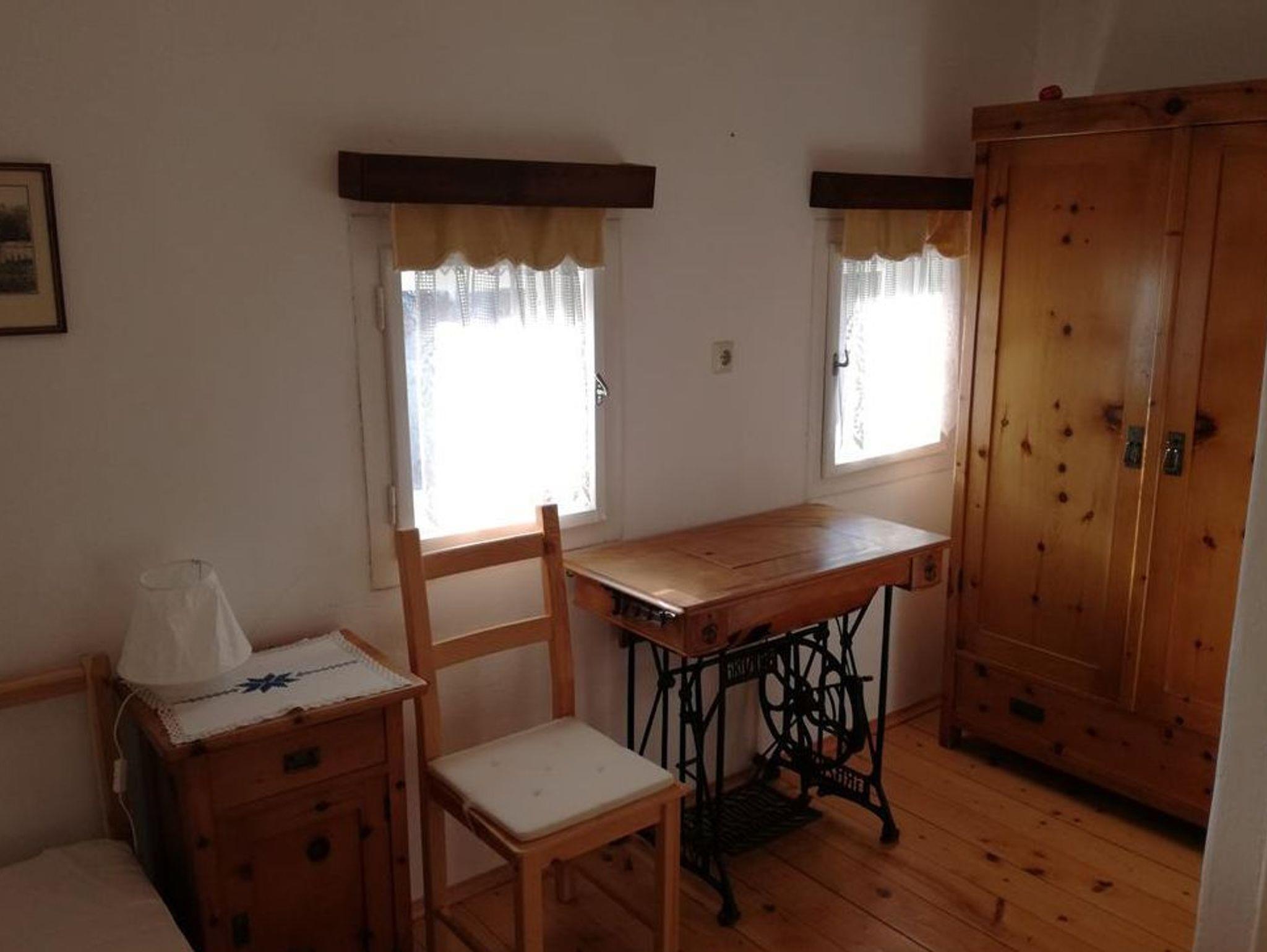 Im Erdgeschoß des Hauses befinden sich Küche (gut ausgestattet: E- Herd, Kühlschrank mit Tiefkühlfach, Geschirrspüler, Kaffeemaschine, Mikrowellenherd etc.) mit Esstisch, eine Zirben-Stube mit LCD-SAT-TV und Schlafcouch, Bad und WC. Im Obergeschoß sind 3 Schlafzimmer: eines mit Doppelbett, angrenzend eines mit 2 Betten (und Balkon) und extra zugänglich eines mit einem französischen Bett.