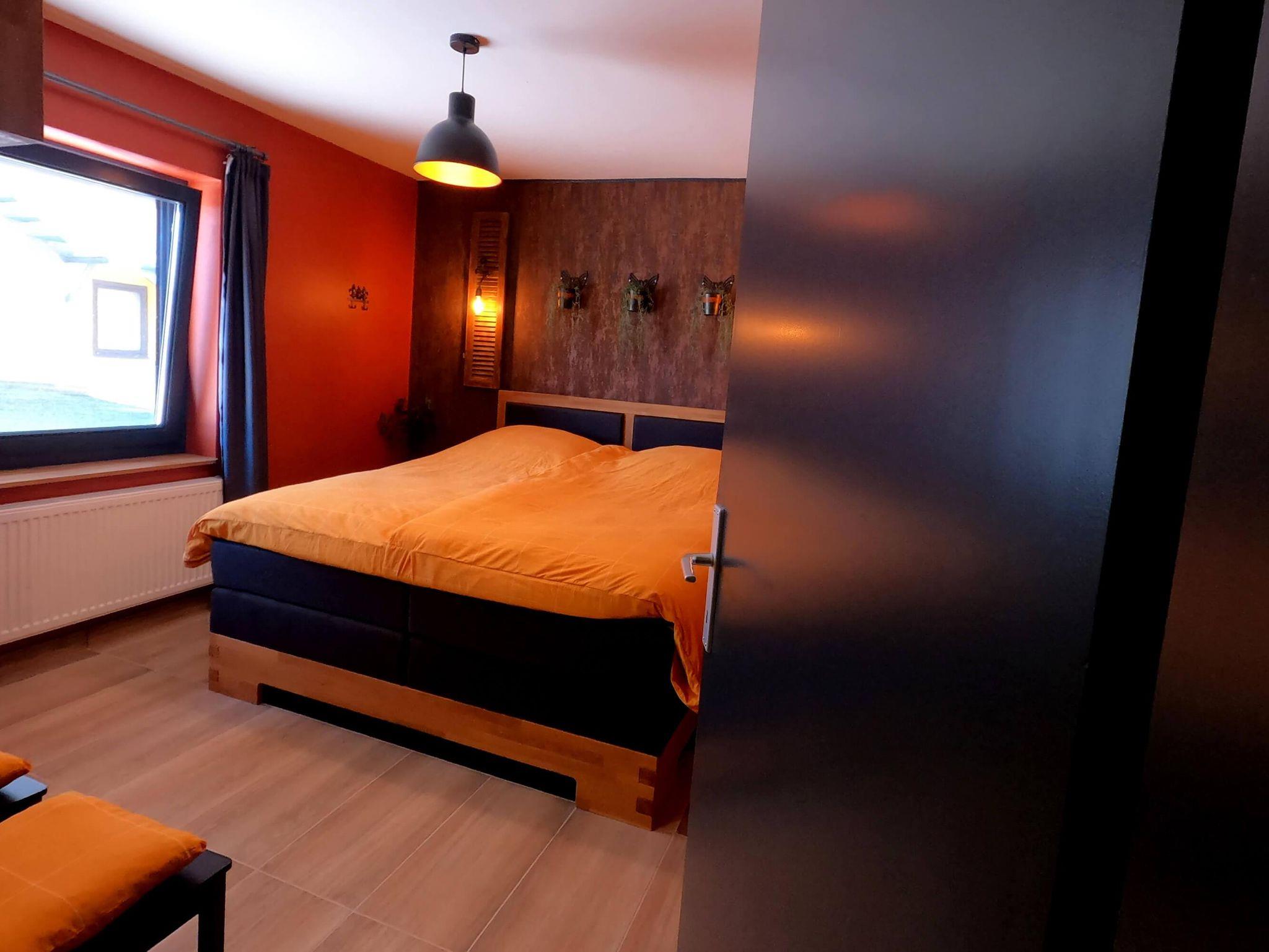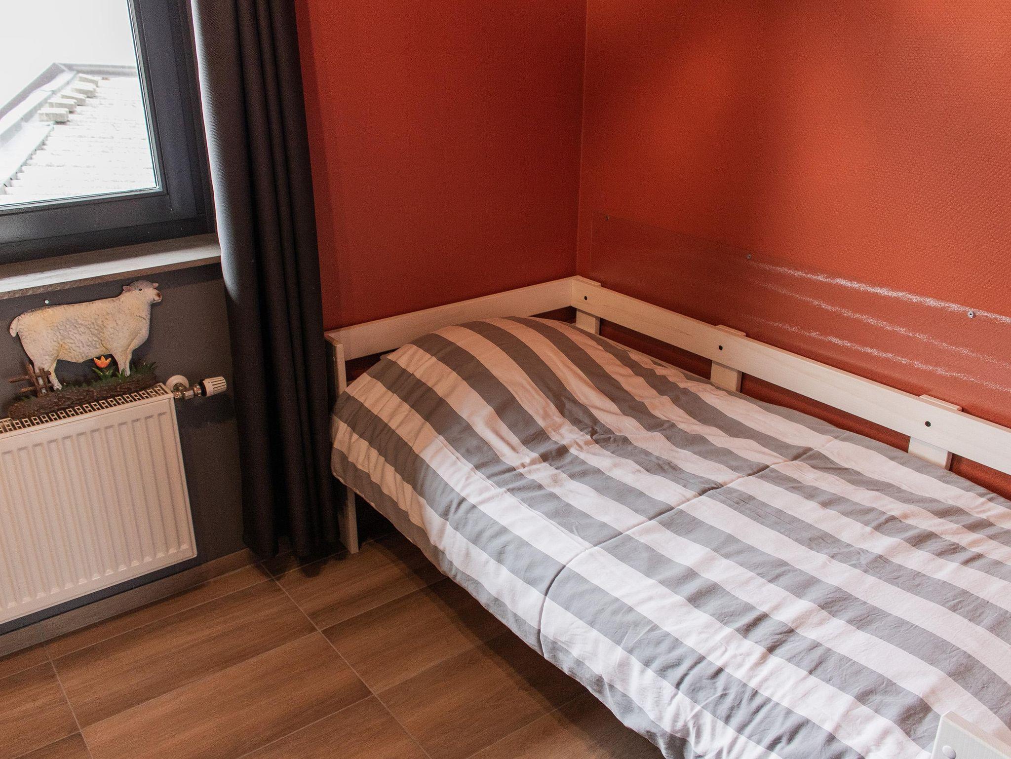 Wohnung bestehend aus: großer, geräumiger Halle mit Garderobe, großem Wohnzimmer mit offener (Wohn-)Küche. Die Küche ist ausgestattet mit: Glaskeramikkochfeld, Backofen, Mikrowelle, Geschirrspüler, Wasserkocher, Kaffeemaschine, Spüle mit fließendem kaltem und warmem Wasser, Besteck, Pfannen und allen anderen Küchengegenständen. 3 Schlafzimmer für maximal 5 Personen. 1 Schlafzimmer mit einem großen Doppelbett (180x200), 1 Schlafzimmer mit 2 Einzelbetten (90x200) und 1 Schlafzimmer mit 1 Einzelbett (90x200) für 1 Person/Kind. Badezimmer mit Walk-in Dusche, Waschbecken mit fließendem kaltem und warmem Wasser. Getrennte Toilette. Die freistehende Wohnung befindet sich im Erdgeschoss und ist über eine kleine Treppe mit 3 Stufen vom Straßenniveau aus zugänglich. Parkplätze stehen kostenlos zur Verfügung. Außerdem können Sie den großen Innenhofgarten mit Terrasse und Spielplatz in unserem angrenzenden Pensiongebäude nutzen.