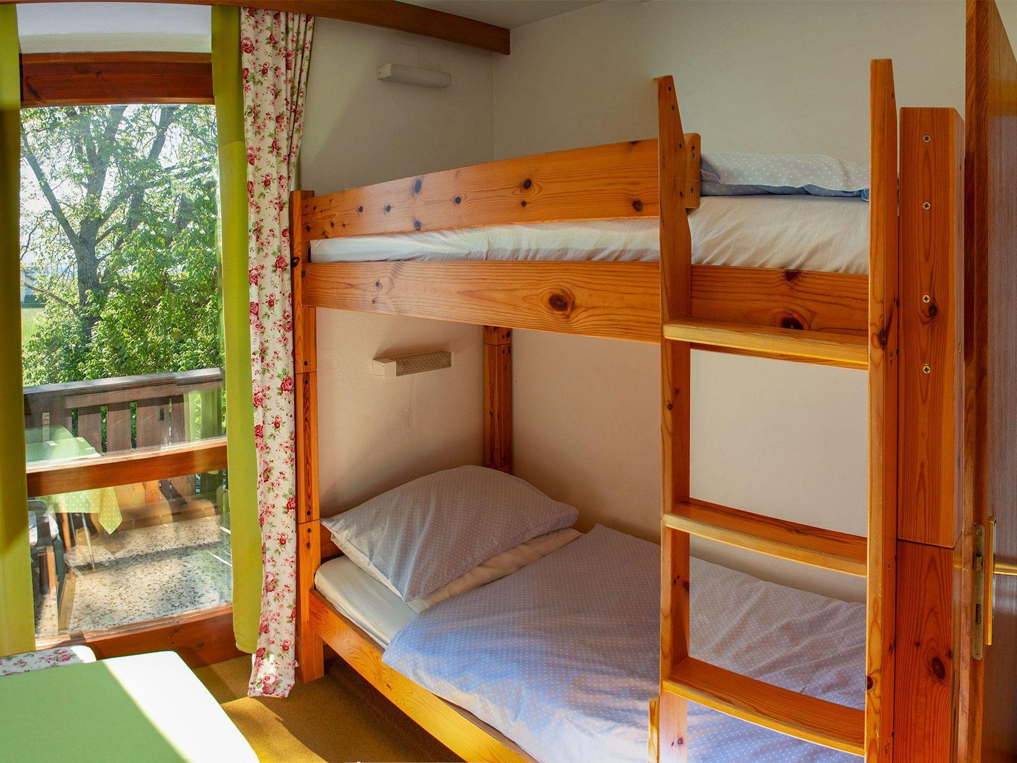 1 kleines Schlafzimmer mit Stockbett, Ostbalkon Seeblick, Bad/WC , Vorraum