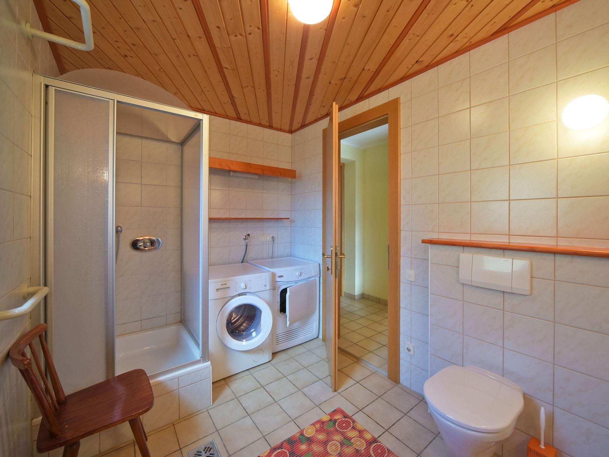 • Geräumiges Badezimmer mit Dusche, Waschbecken, WC, Bidet, Waschmaschine und Trockner;