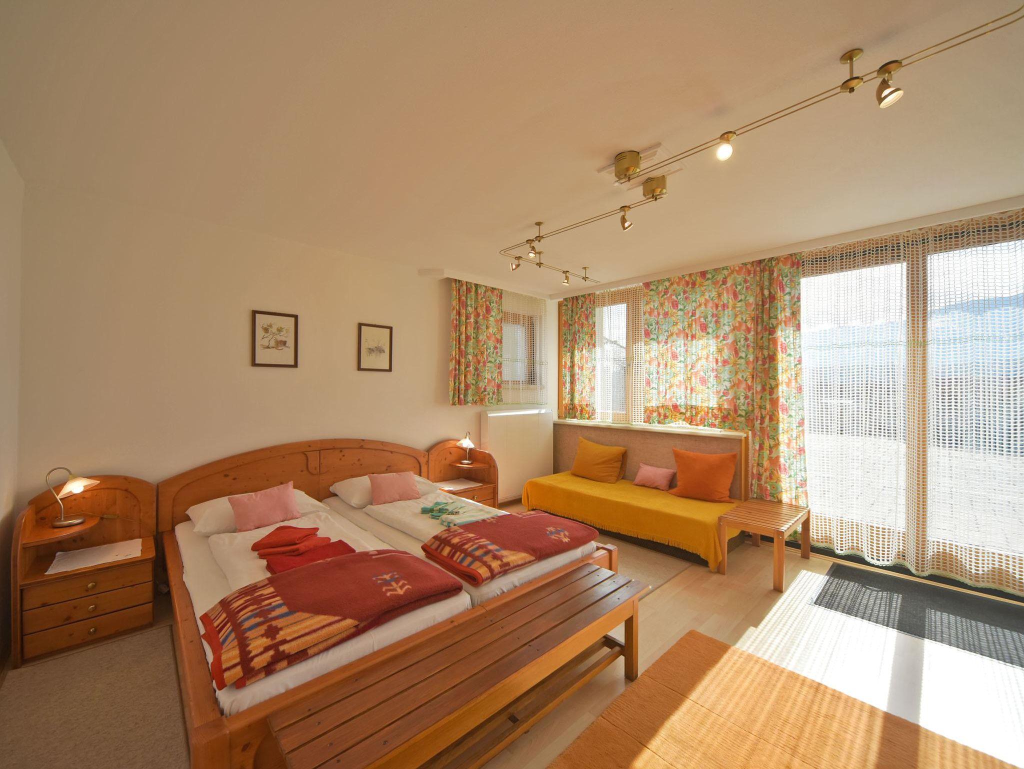 • Doppelschlafzimmer mit Option auf 3. Bett und direktem Zugang zur überdachten Loggia und zum Panorama-Wintergarten;