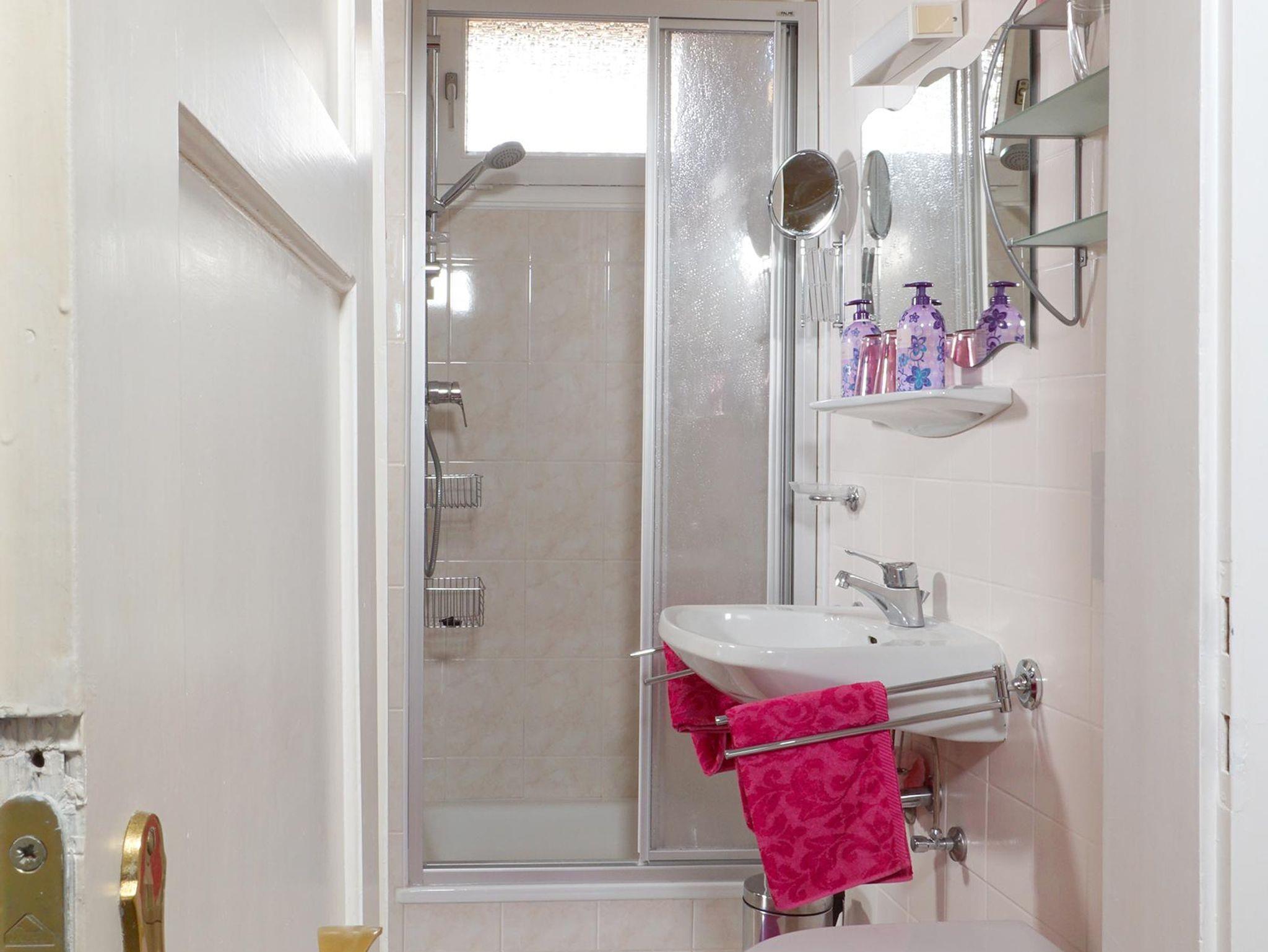 Die voll ausgestattete Küche (ohne Geschirrspüler) bietet Toaster, Kaffeemaschine und alles, was Sie für Ihre Lieblingsgerichte brauchen. Das Badezimmer verfügt über Dusche und WC in einem Raum.