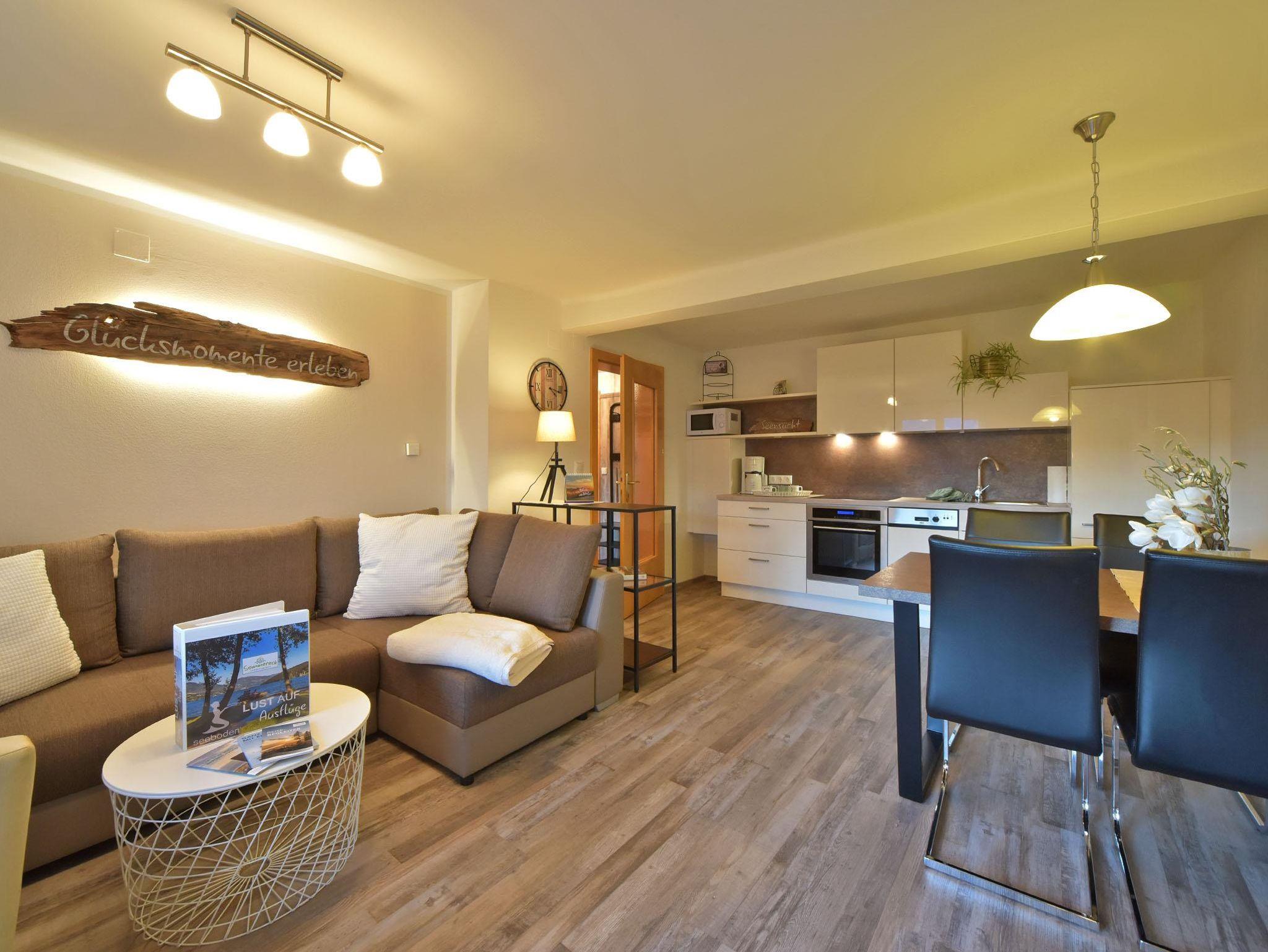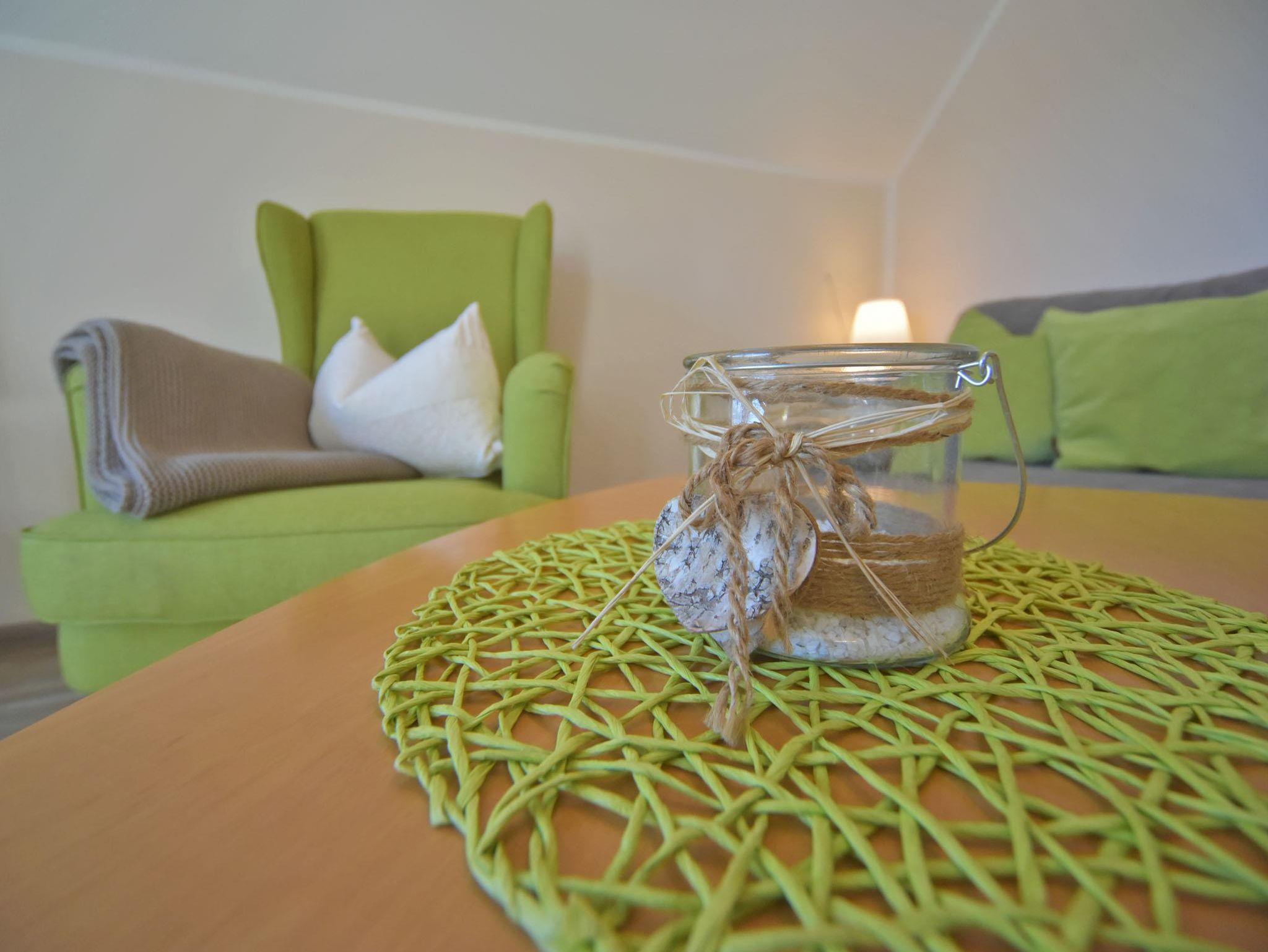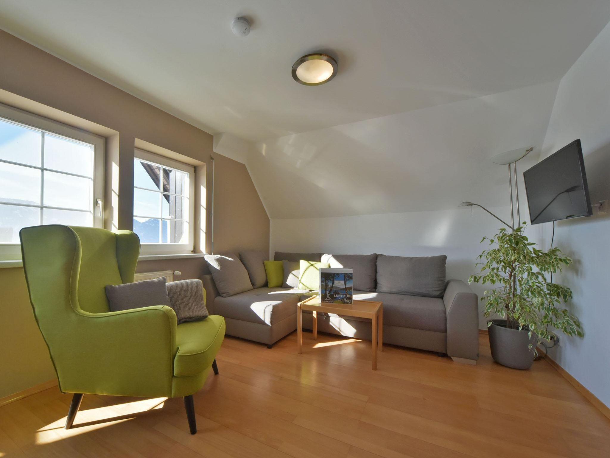 Wasserkocher, Toaster, Kaffeemaschine, Microwelle. Esstisch, gemütliche Couch, ostseitiger Balkon mit Rundumblick auf die Bergwelt, ein Schlafzimmer. Bad mit Dusche, Fön, Handtücher, Bett- und Tischwäsche sind bereitgestellt. WC und Bad getrennt.