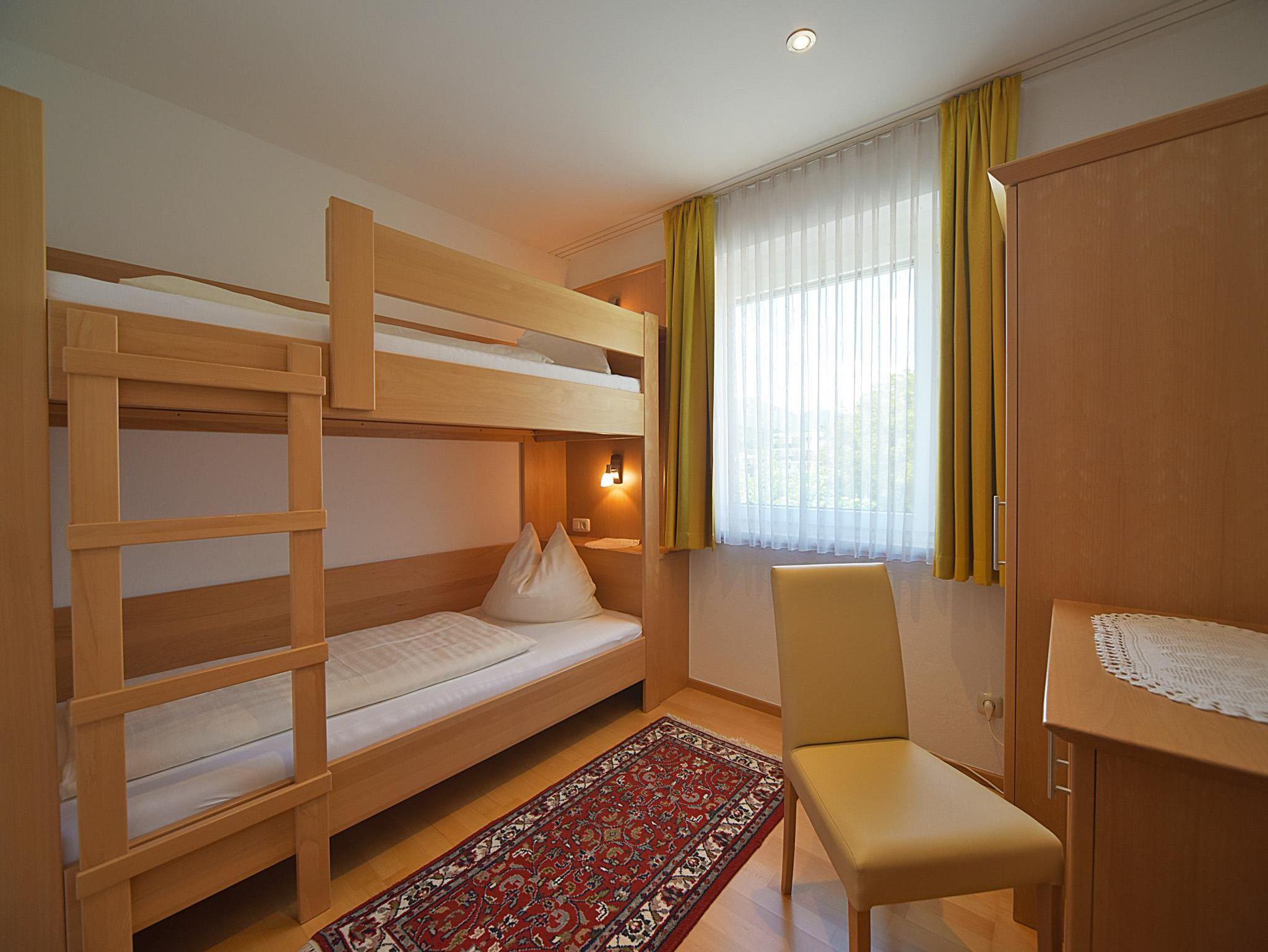 2 Zimmer mit Doppelbett, 1 Zimmer mit Etagenbett, DU, WC, Südbalkon