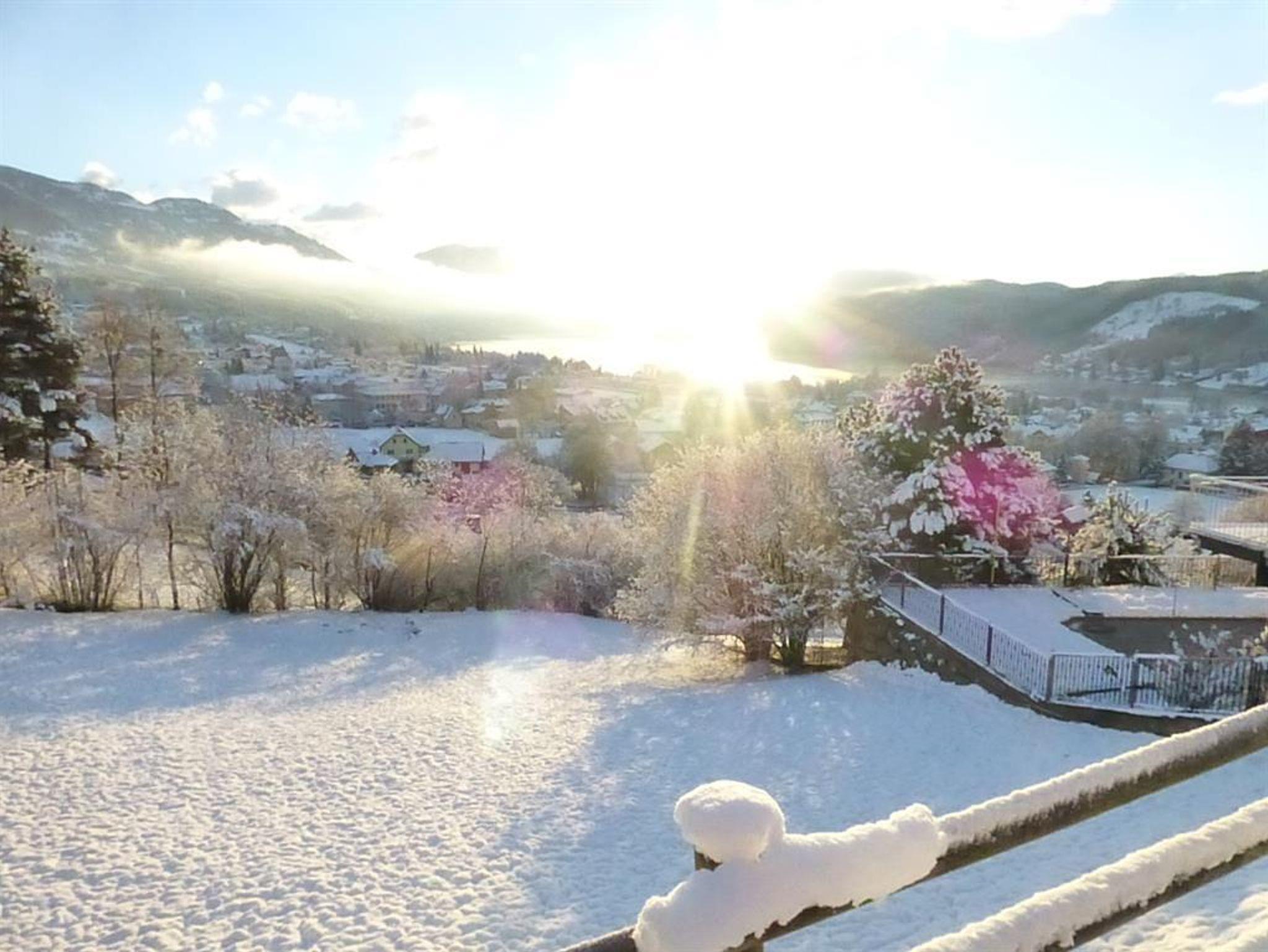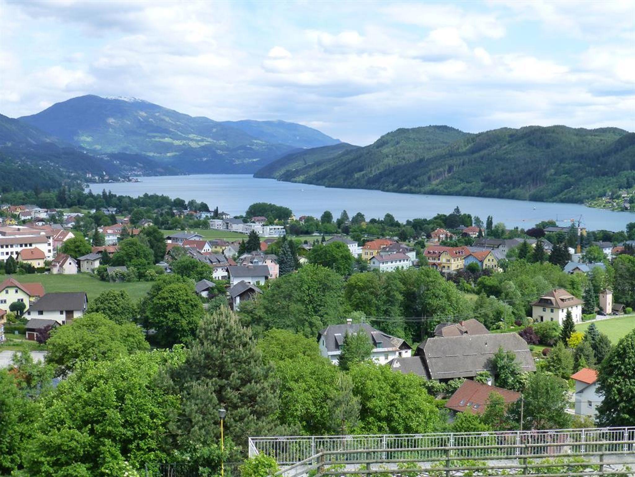 Wohnzimmer mit SAT-TV, W-LAN und Bad (Dusche, WC), Haar Föhn sowie Balkon mit spektakulären Blick über den ganzen Millstätter See, den Ort und die umliegende Berglandschaft.