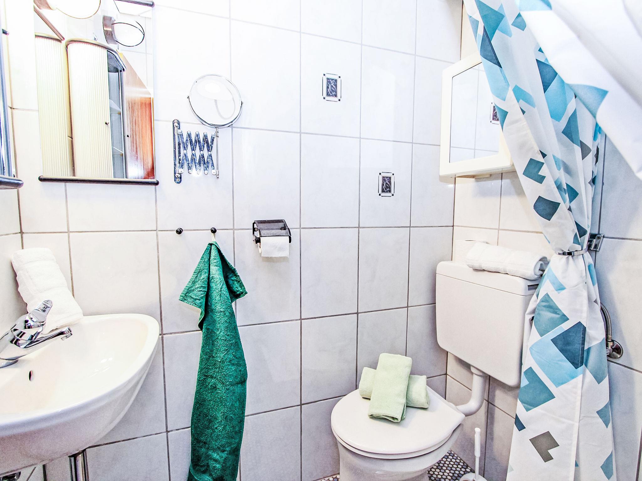3-room apartment 62 m2, on the upper ground floor. Beautiful and cosy furnishings: entrance hall. Living room with dining table and cable TV (flat screen), radio and CD-player. Exit to the balcony. 1 double bedroom. Exit to the balcony. 1 room with 1 bed and 1 double fold-away bed (2 x 90 cm, length 190 cm). Exit to the balcony. Kitchenette (mini-oven, 4 ceramic glass hob hotplates, toaster, electric coffee machine). Shower/WC. 3 small balconies. Please note: non-smokers only. Smoke alarm. The property is one of a type of property or apartment.