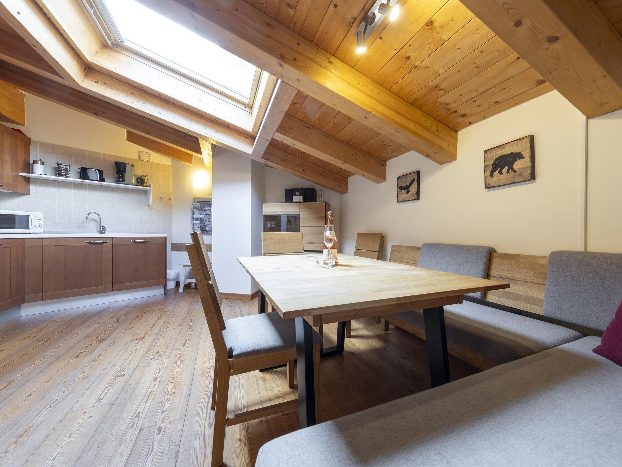 Das Apartment Luna (ca. 85 m²) liegt im 2. Stock und verfügt über einen großen Wohn-Essbereich mit Eckbank, Küchenzeile, großes Sofa, Badezimmer mit Badewanne, Toilette und Bidet. Besonders gemütlich sind die offenen Dachbalken. Eine 2te Toilette befindet sich im Eingangsbereich. Das zweite Schlafzimmer verfügt über zwei getrennte Betten. Die Einrichtung besteht aus Vollholzmöbeln. Der große überdachte Balkon ist vom Wohnzimmer und vom vorderen Schlafzimmer (Doppelbett) aus erreichbar.