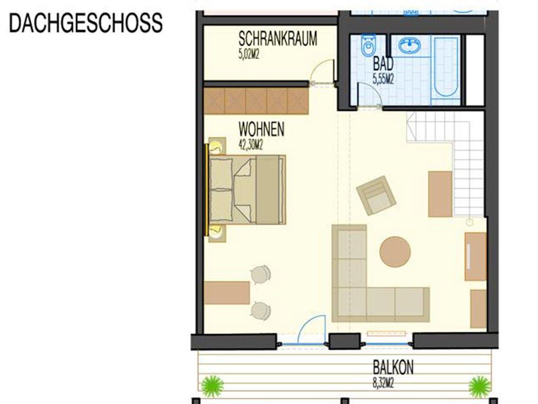 *ca. 115m² *1-6 Personen *Wohnung über 2 Etagen unten: *1 Schlafzimmer *1 Küche mit Essbereich *1 Badezimmer mit Doppelwaschtisch, Badewanne, Dusche und separatem WC/Bidet *1 WC extra *großzügiger Balkon oben: *1 Schlafzimmer mit großem Wohnbereich *1 Badezimmer mit Badewanne und WC *ein weiterer großzügiger Balkon