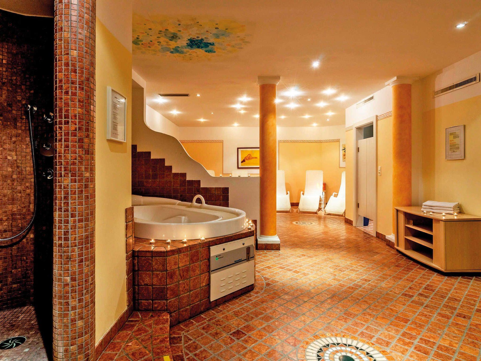Geniessen Sie unsere Wellnessoase mit Sauna, Solarium, Whirlpool.