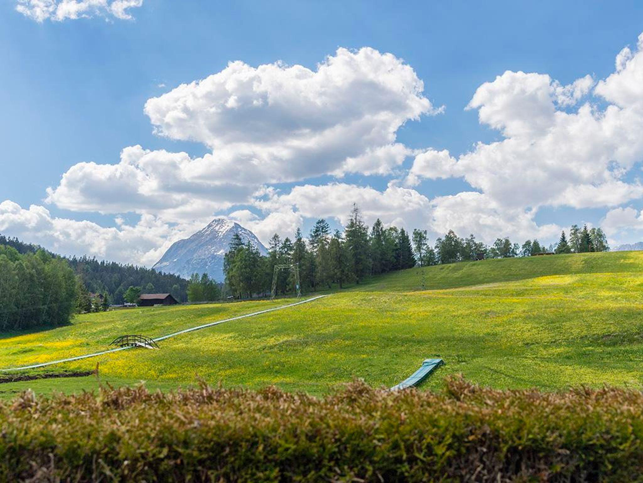 Ein großer, bunter Blumengarten umgibt unser Haus, liebevoll von den Gastgebern gepflegt. Hinter dem Haus lädt eine duftende Blumenwiese zu gemütlichen Spaziergängen auf den Geigenbühel ein, der im Winter als Skipiste genutzt wird. Die optimale Lage ermöglicht es sogar, mit angeschnallten Skiern zum Sammelplatz der Schischule Seefeld oder zum Skilift Geigenbühel zu gelangen.
