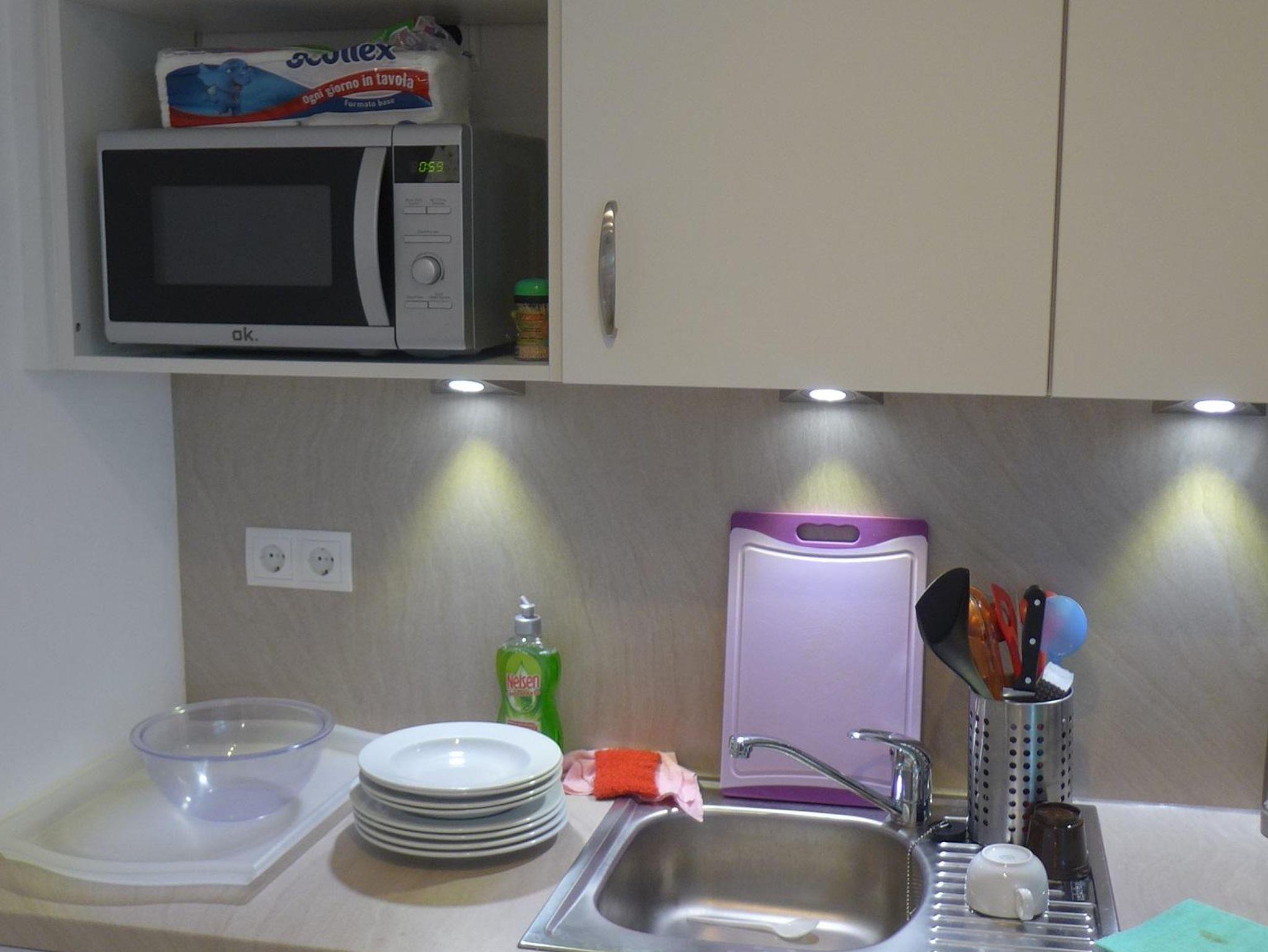 Das Apartment mit 65m² liegt im Erdgeschoß und besteht aus einem Eingangsbereich, einem Schlafzimmer mit einem Doppelbett, einem weiteren Schlafzimmer mit Doppelbett und Stockbett, einem Wohnzimmer mit einem Schlafsofa, Esstisch, Kabelfernseher und W-LAN. Die separate neue Küche ist mit allen modernen Küchengeräten ausgestattet. Das Badezimmer hat eine Badewanne mit Duschwand. Durch die Glasfront gelangen Sie direkt auf die Terrasse und den Garten. Besuchen Sie unsere Homepage.