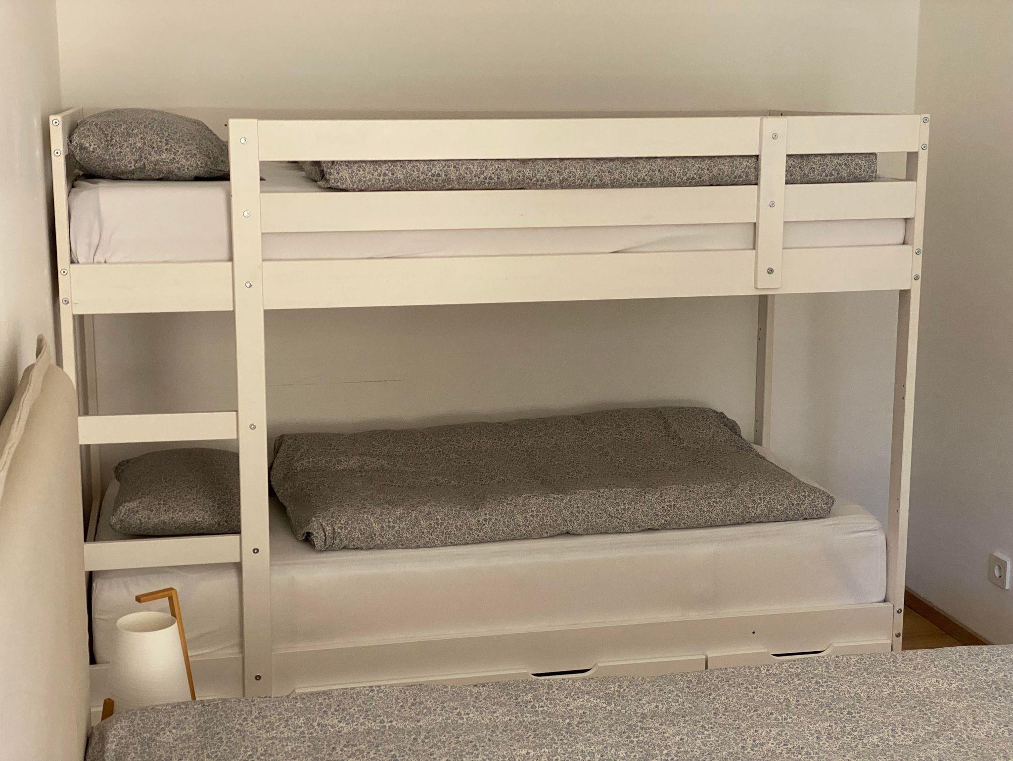 • Schlafzimmer mit hochwertigem Doppelbett sowie Stockbett