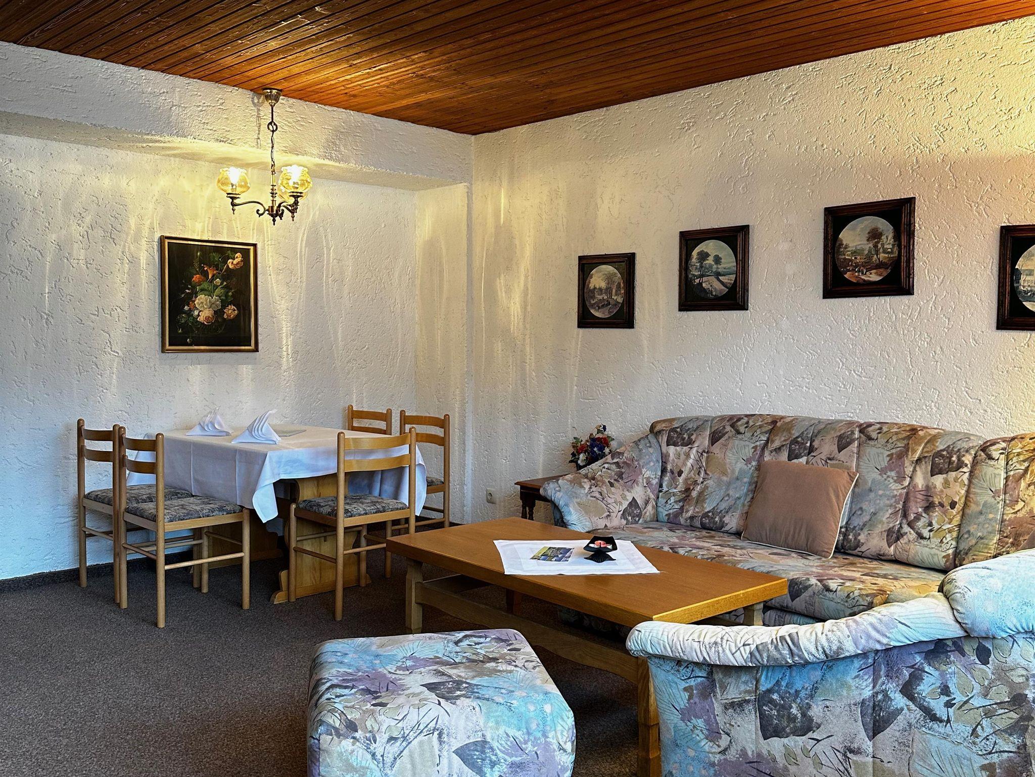 Unser Haus liegt in sonniger, ruhiger Lage und das Ortszentrum sowie das Wander- Skigebiet Rosshütte sind nur wenige Gehminuten entfernt. Eine idyllisch gelegene Liegewiese, eigener Spielplatz und Garagen sind vorhanden. Nach einem sportiven Tag können Sie im beheizten Hallenbad sowie in der Finnischen- oder Vitalsauna relaxen. Der offene Kamin und Billard laden zum geselligen Abend ein. Hotspot ab Mitte 2005.