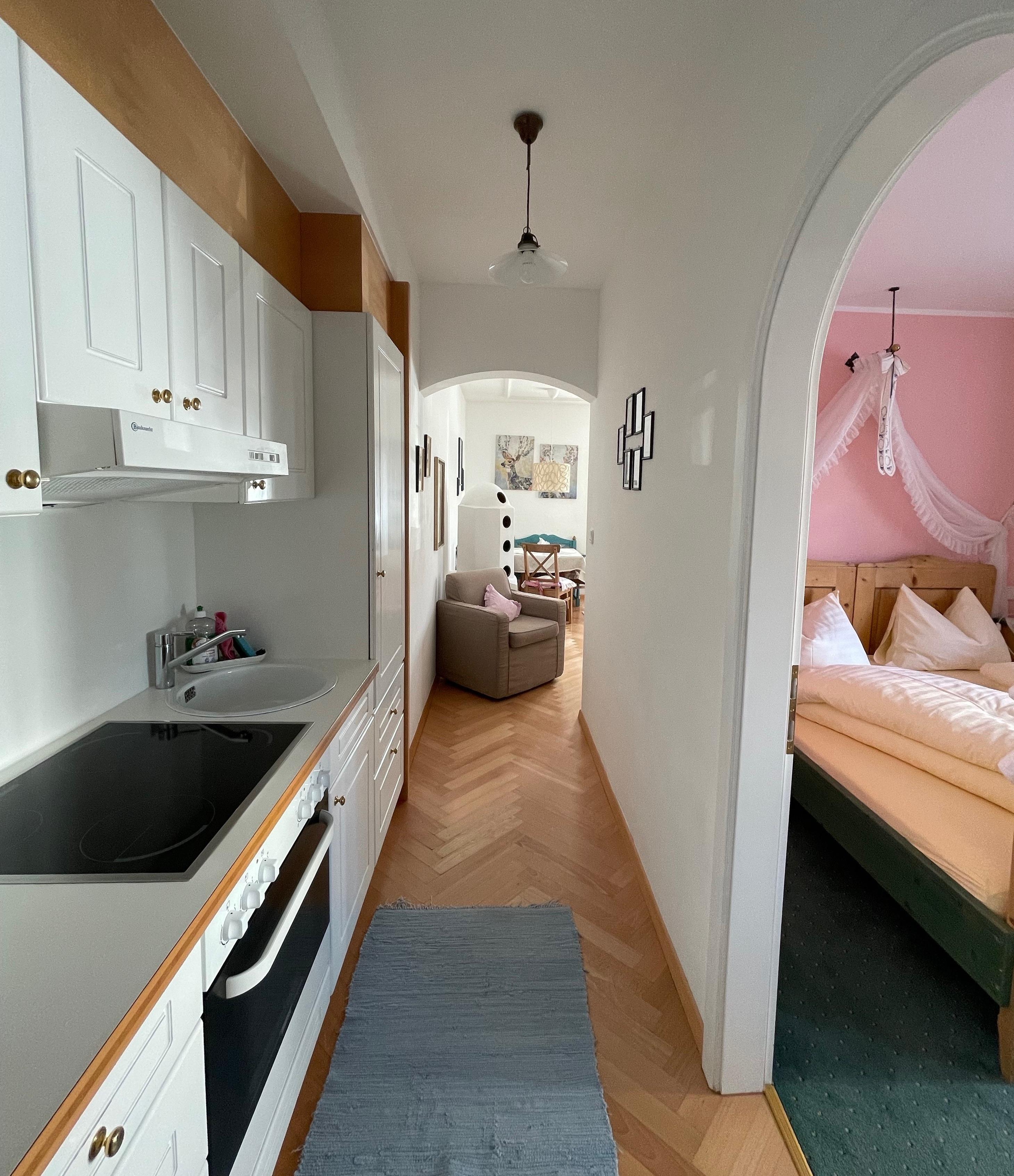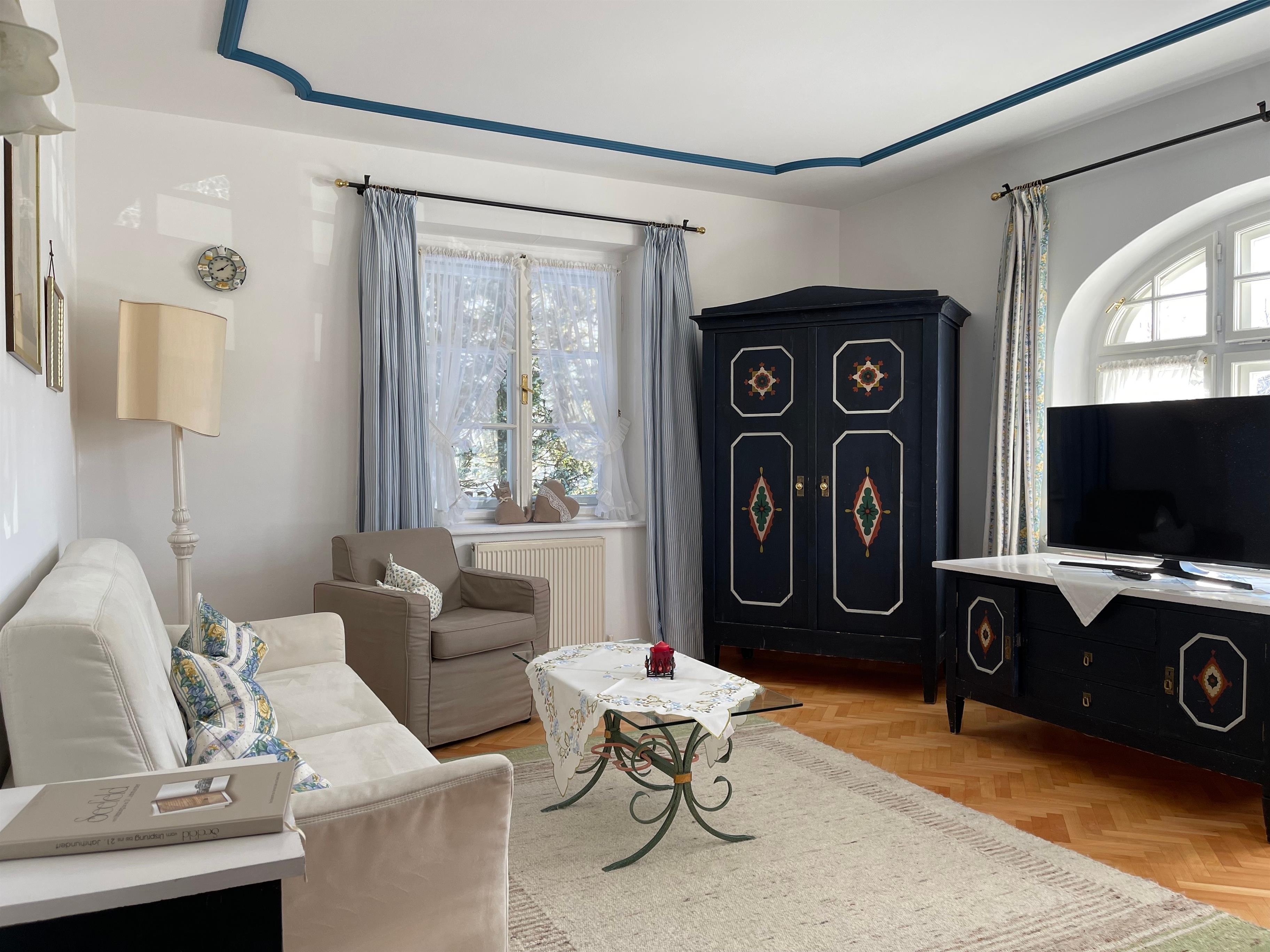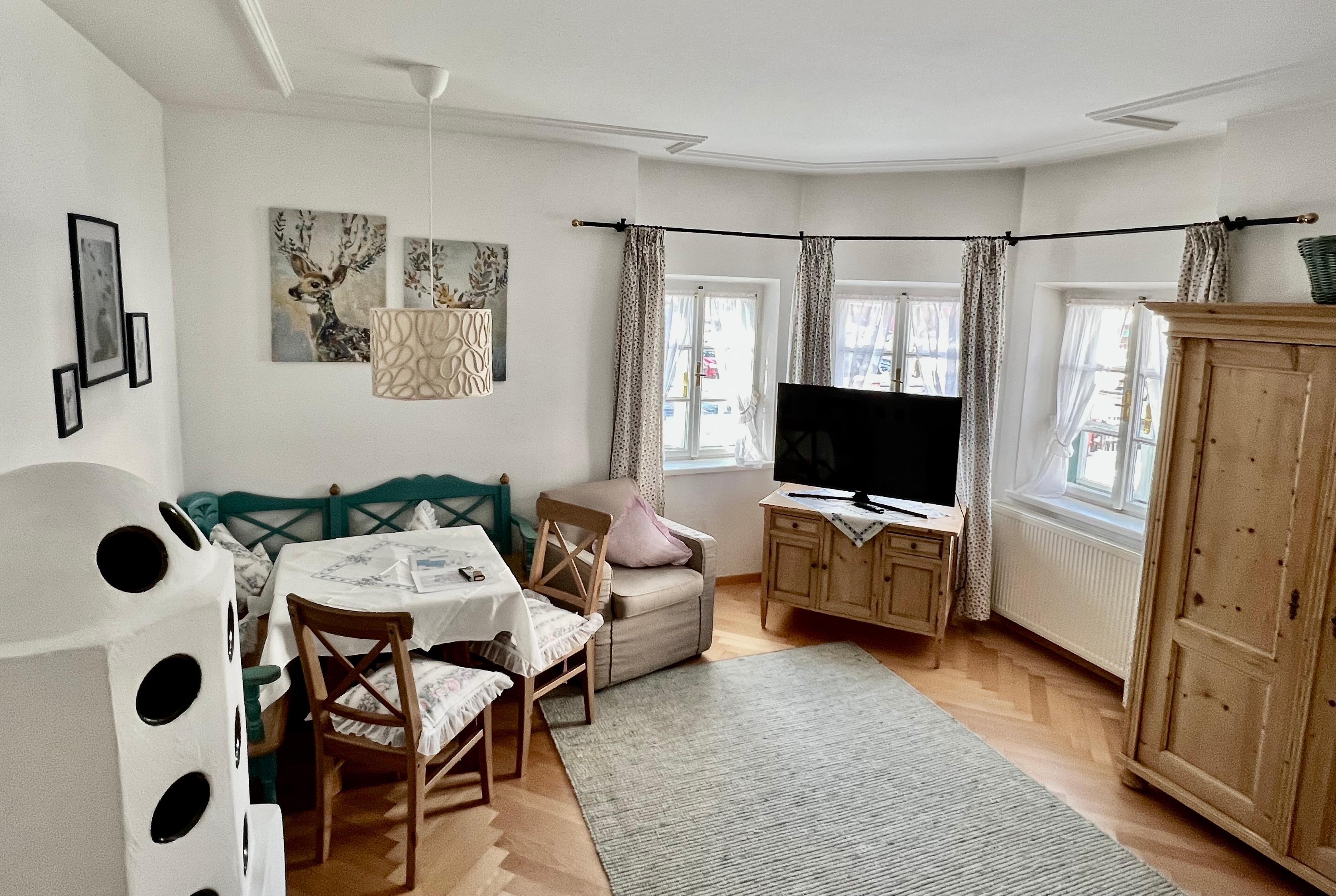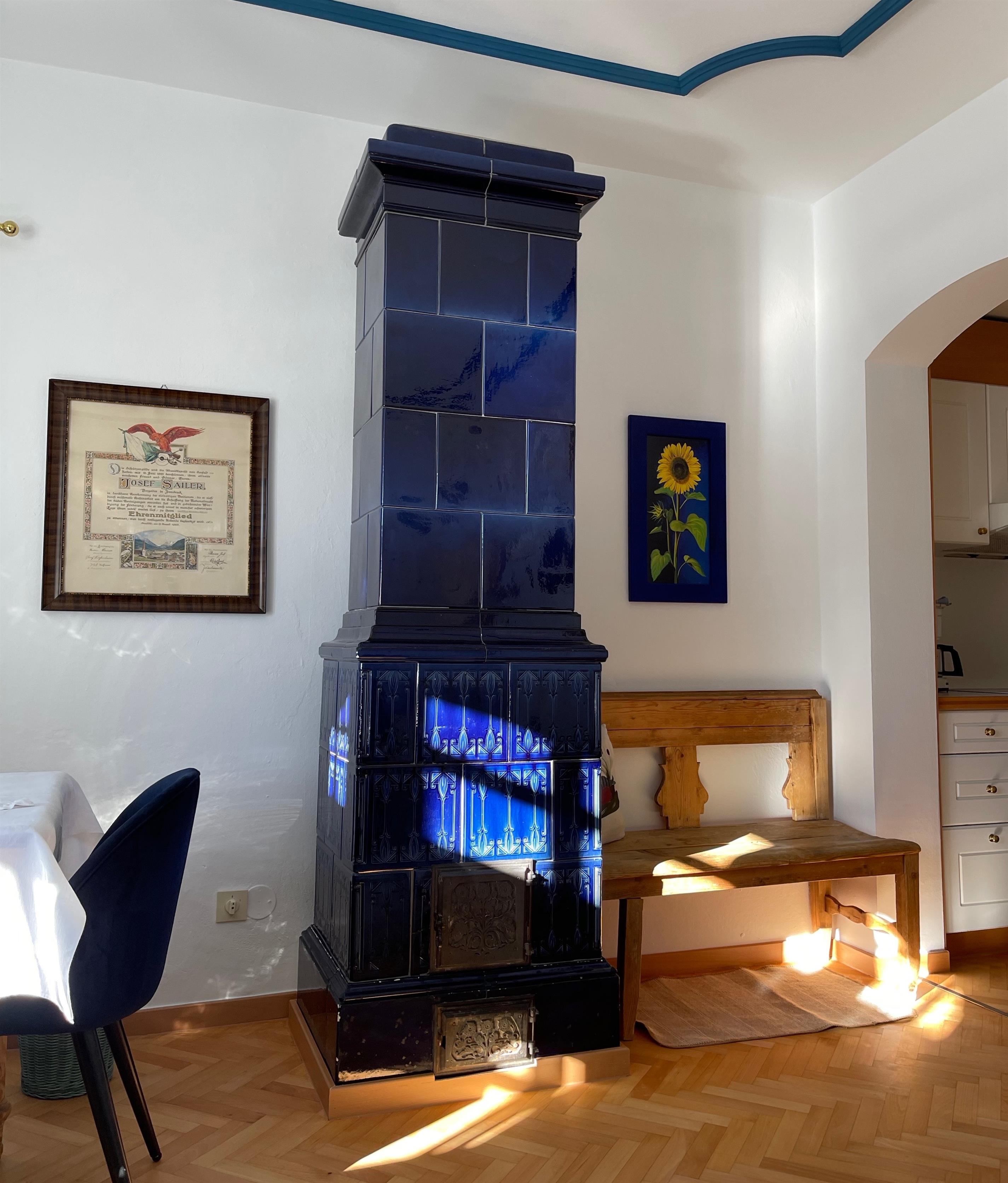 Beide Ferienwohnungen sind im ursprünglichen Stil erhalten und verfügen über lichtdurchflutete Wohnzimmer mit Sofa bzw. Doppel-Schlafcouch, Schlafzimmer und Marmorbad sowie voll ausgestatteter Kochzeile. Die original Kachelöfen wurden jeweils erhalten, sind nun zusätzlich elektrisch bedienbar und sorgen für ein besonders gemütliches Wohnklima. High Speed WLAN steht im ganzen Haus zur Verfügung, unsere TV Geräte sind NETFLIX, APPLE TV, AMAZON... etc. tauglich.