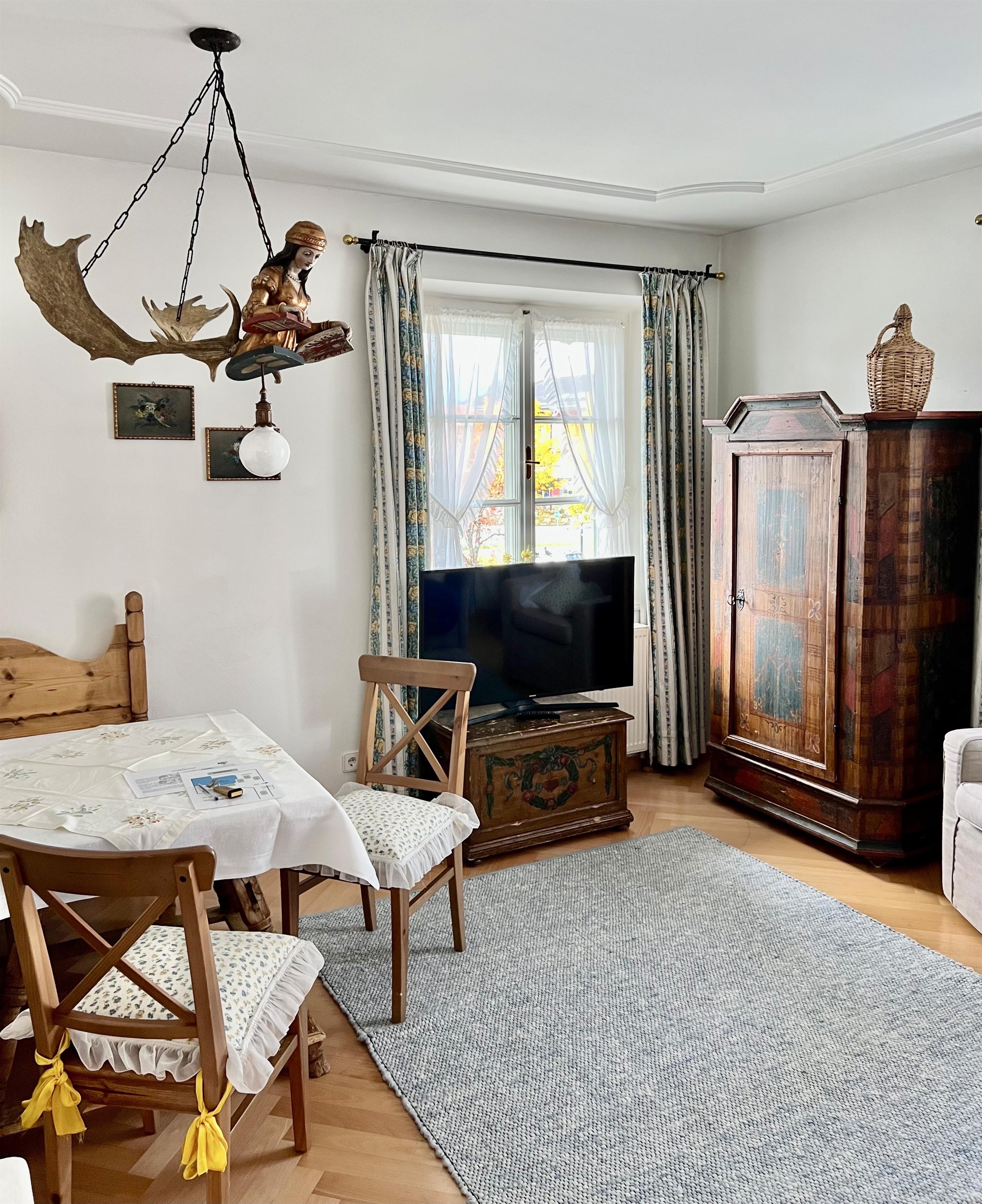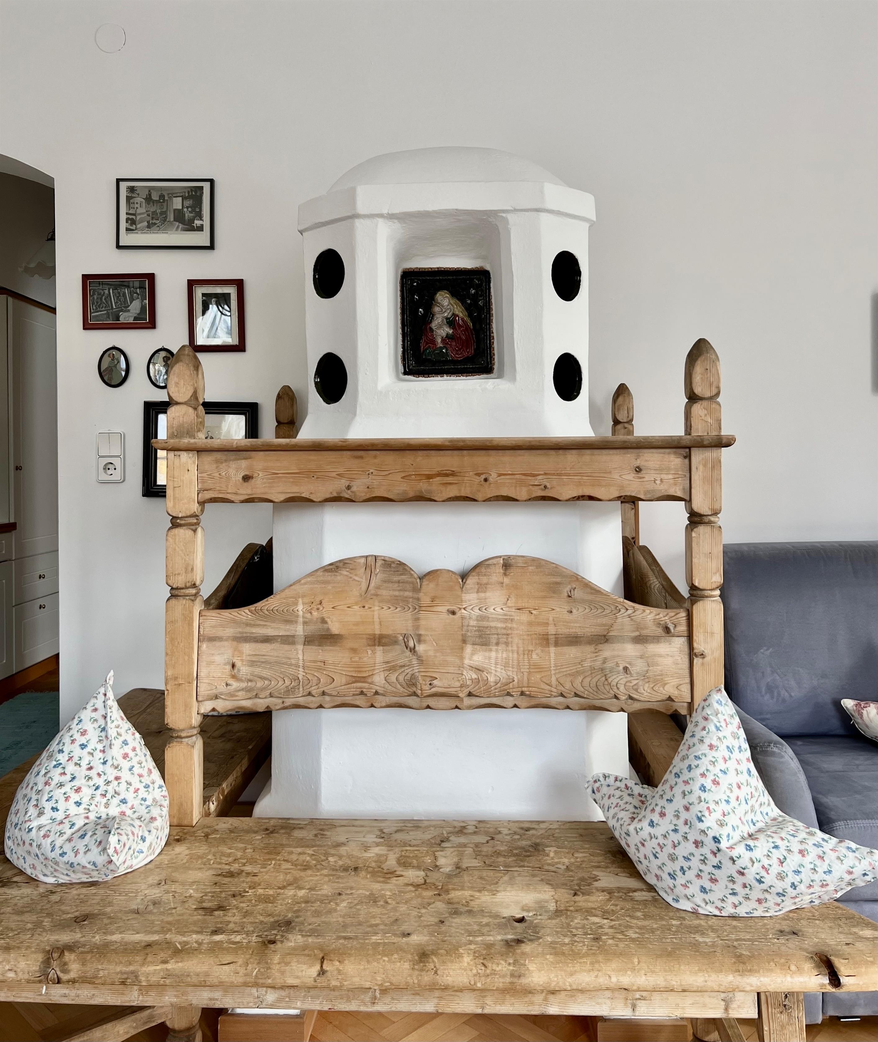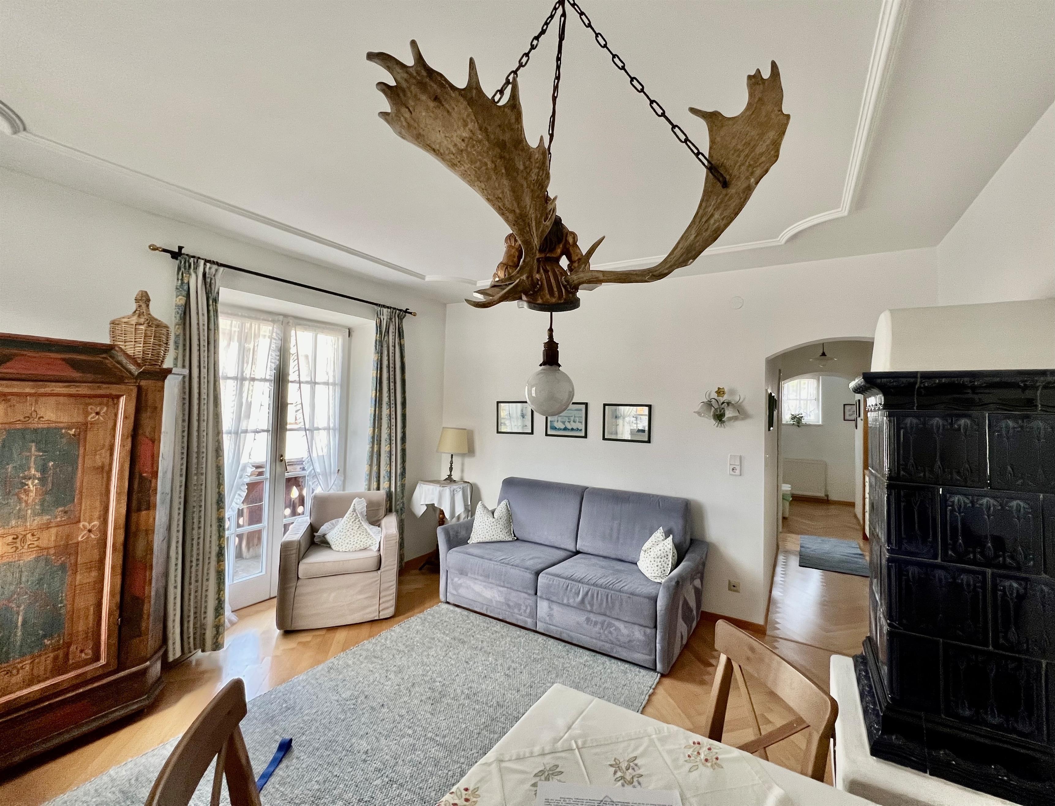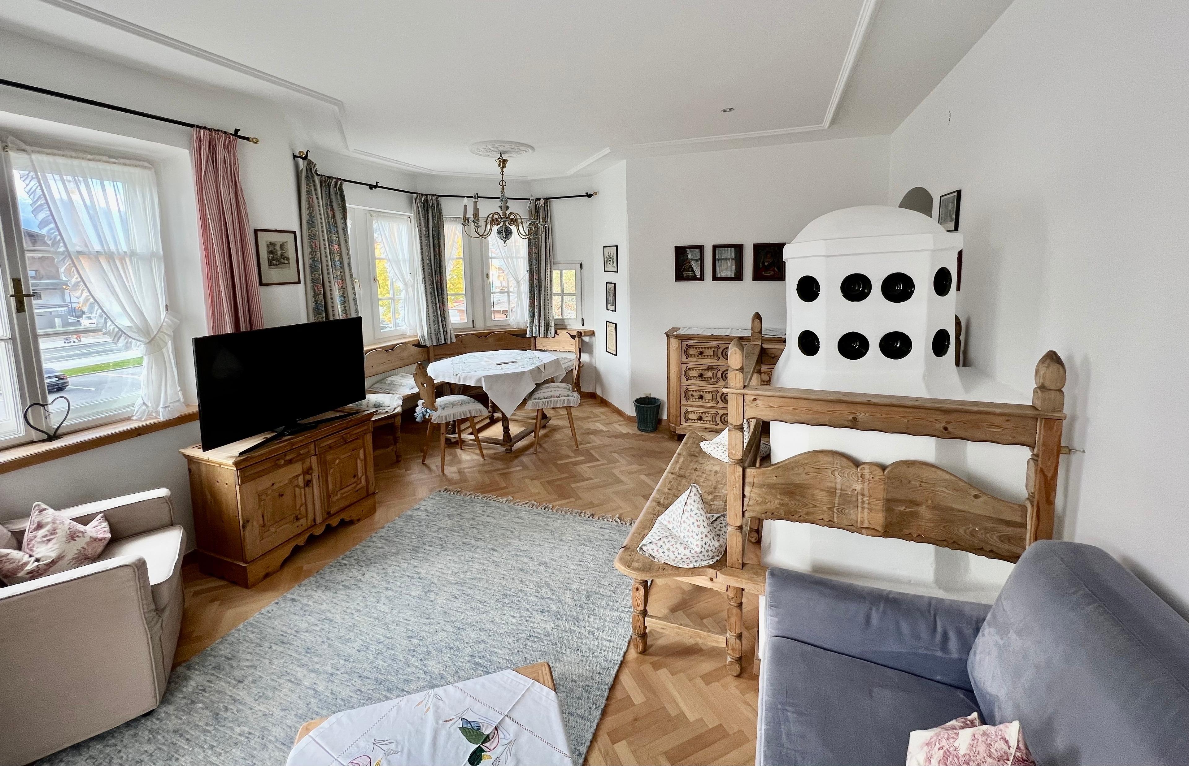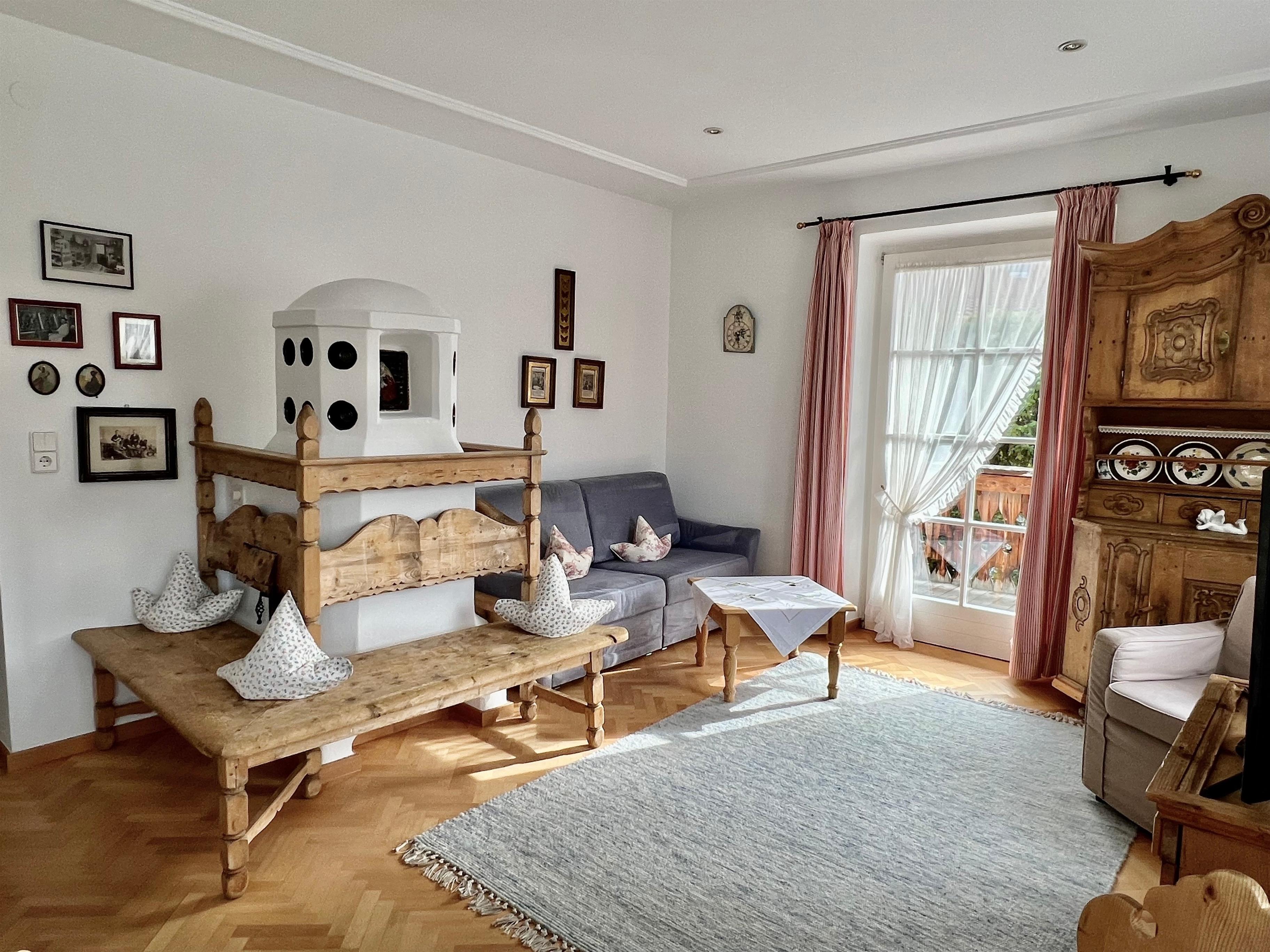 Beide Ferienwohnungen sind im ursprünglichen Stil erhalten und verfügen über Balkon, lichtdurchflutete Wohnzimmer mit Sofa bzw. Doppel-Schlafcouch, Schlafzimmer und Marmorbad sowie voll ausgestatteter Kochzeile. Die original Kachelöfen wurden jeweils erhalten, sind nun zusätzlich elektrisch bedienbar und sorgen für ein besonders gemütliches Wohnklima. High Speed WLAN steht im ganzen Haus zur Verfügung, unsere TV Geräte sind NETFLIX, APPLE TV, AMAZON... etc. tauglich.