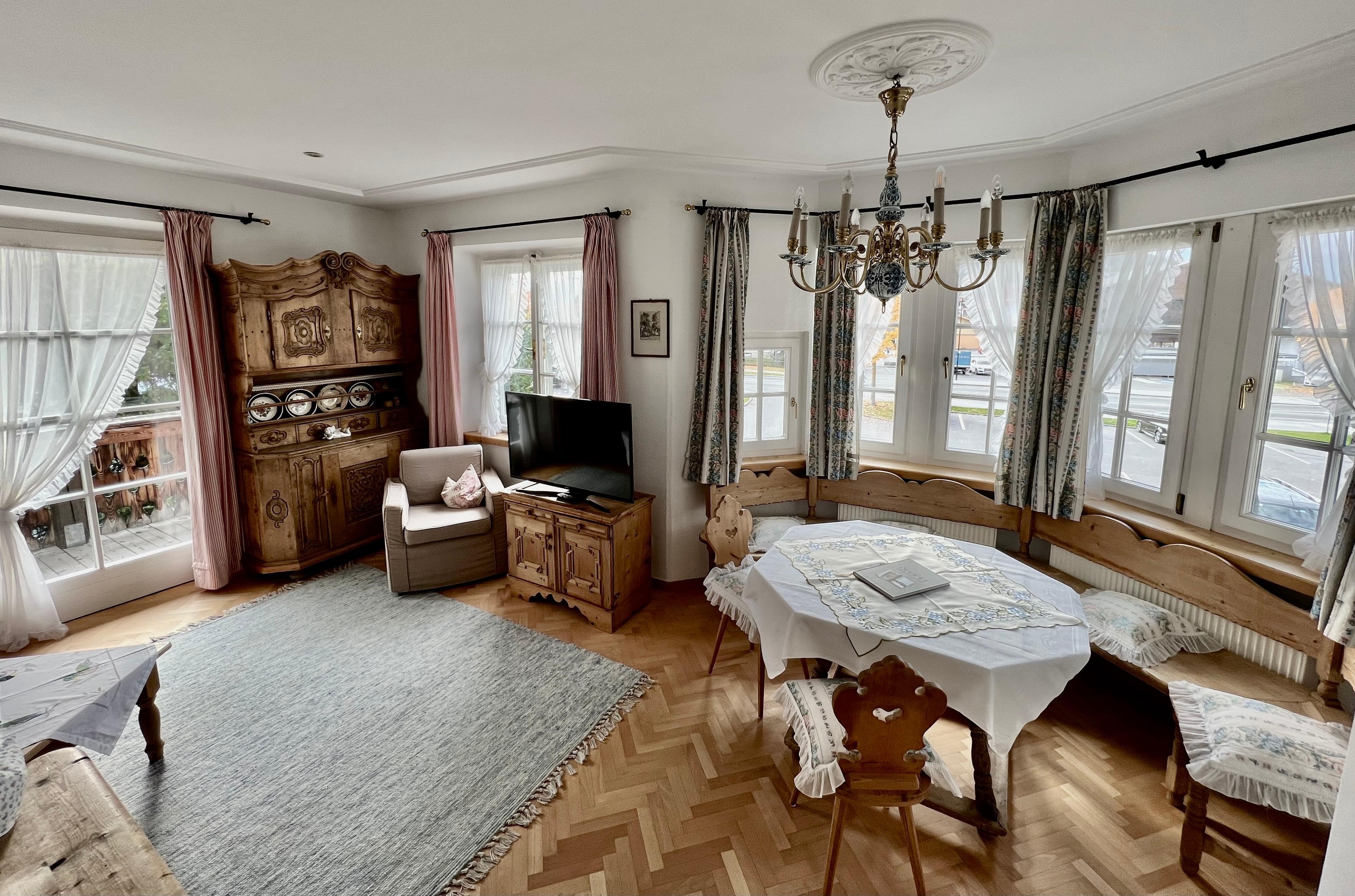 Unsere beiden Apartments 3 und 4 liegen jeweils im Hochparterre und sind gegen Süd-Ost (App 4) sowie gegen Süd-West (App 3) ausgerichtet. Trotz der Nähe zum Seefelder Ortszentrum ist die Lage sehr ruhig und sonnig.