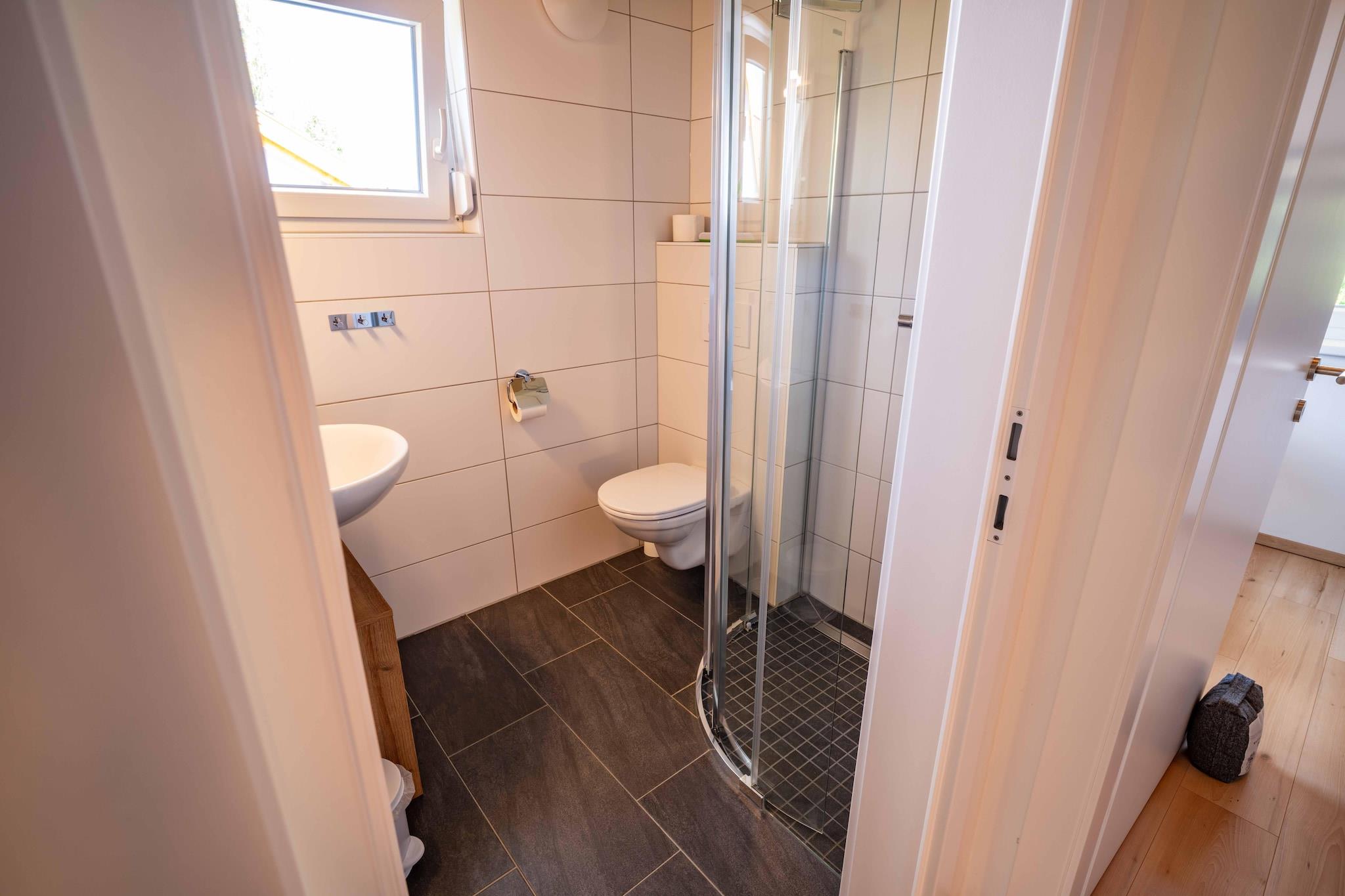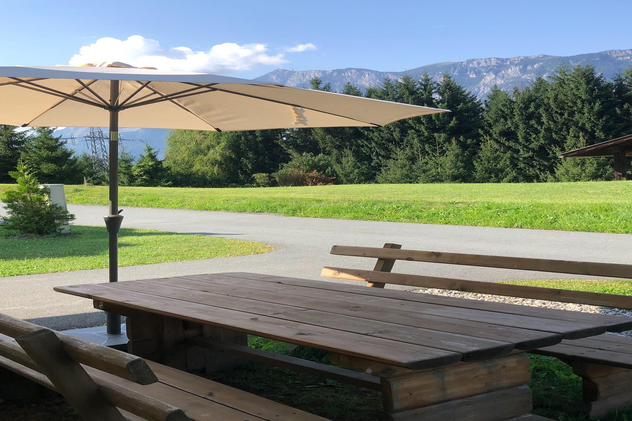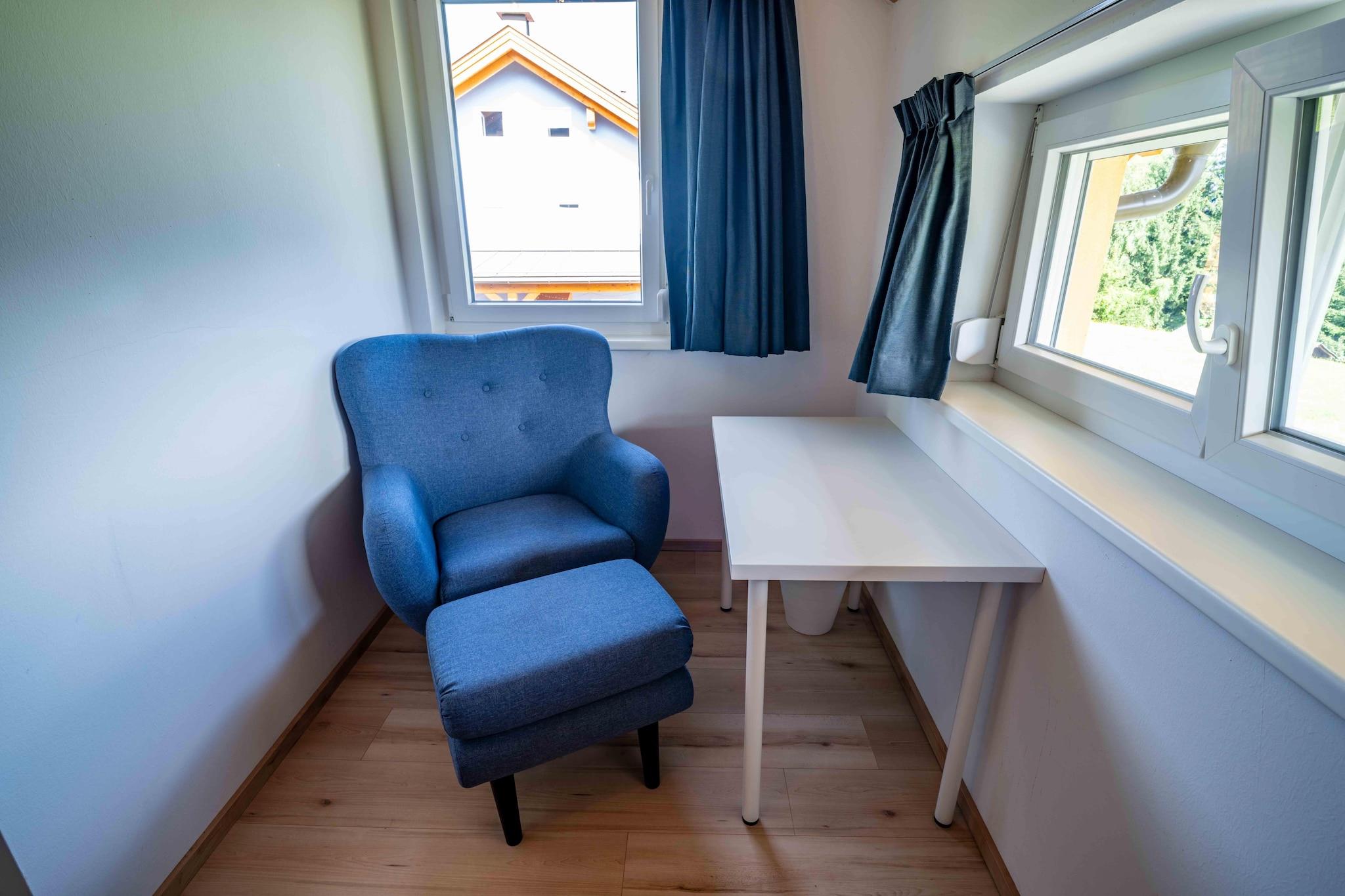 Huset strækker sig over tre etager og kan rumme op til 7 personer. I stueetagen finder du et åbent opholdsområde med et moderne køkken, spiseplads og stue med brændeovn – perfekt til underholdning. Der er også en vaskemaskine og et separat toilet. På første sal er der to soveværelser: det ene med eget badeværelse med badekar, balkon og fantastisk udsigt over bjergene, og det andet med to enkeltsenge, et skrivebord og udsigt over enge og Alperne. Der er også et andet badeværelse med bruser. På loftet er der yderligere tre enkeltsenge – ideelt til børn eller teenagere. Udenfor inviterer en rummelig have med to møblerede terrasser, liggestole, en trampolin og en tøndesauna (for op til 4 personer) dig til at slappe af. Der er også et cykelstativ, legetøj og et badmintonsæt. Det moderne køkken er fuldt udstyret (induktionskomfur, stort køleskab med fryser, kaffemaskine, elkedel osv.) – inklusive basale forsyninger af te, kaffe og krydderier. Der er en højstol og en rejseseng til rådighed.