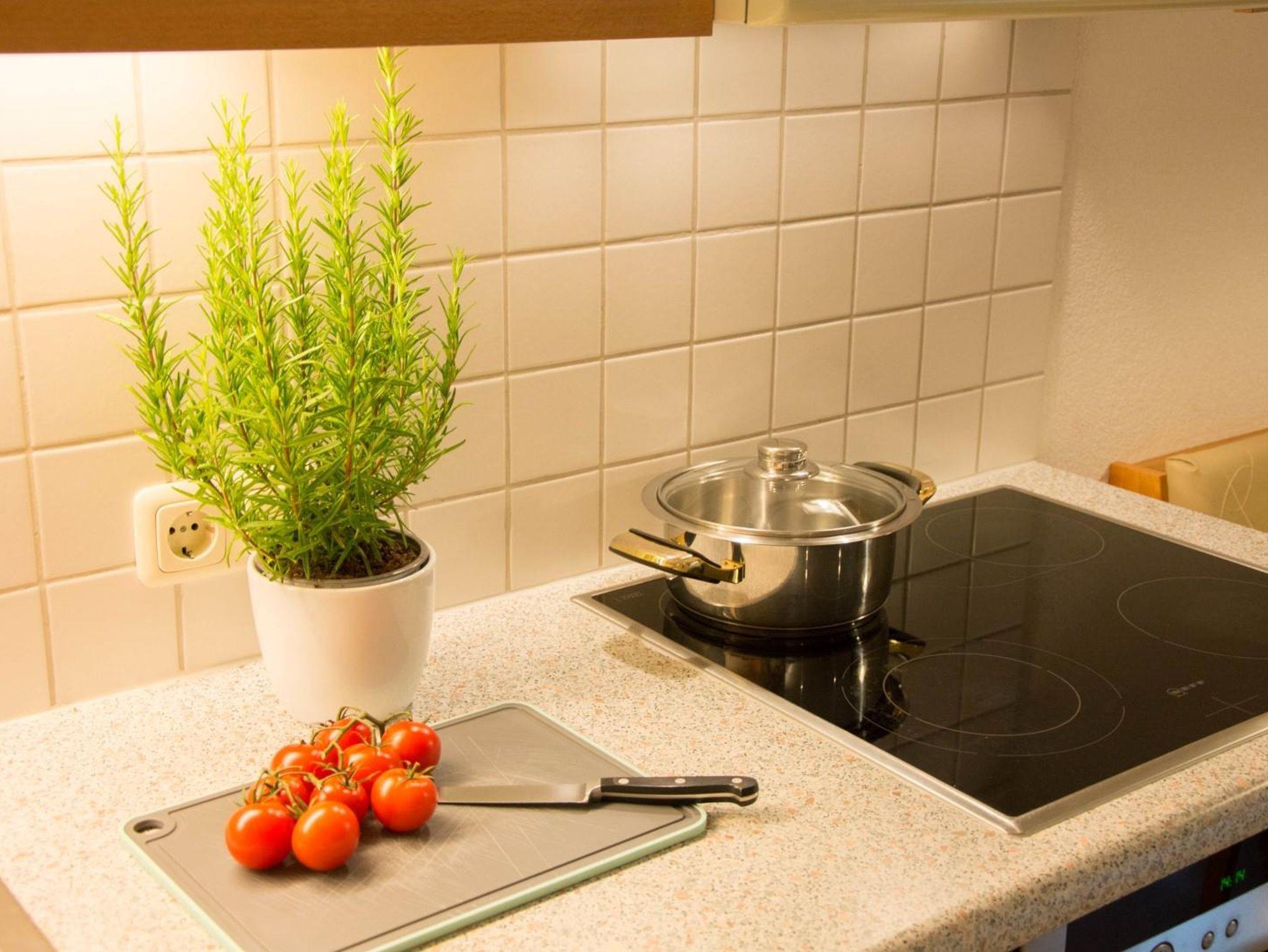 allen Komfort wie: E-Herd mit Backofen, Geschirrspüler, Kühlschrank mit Tiefkühlfach, Kaffeemaschine, Toaster, Wasserkocher