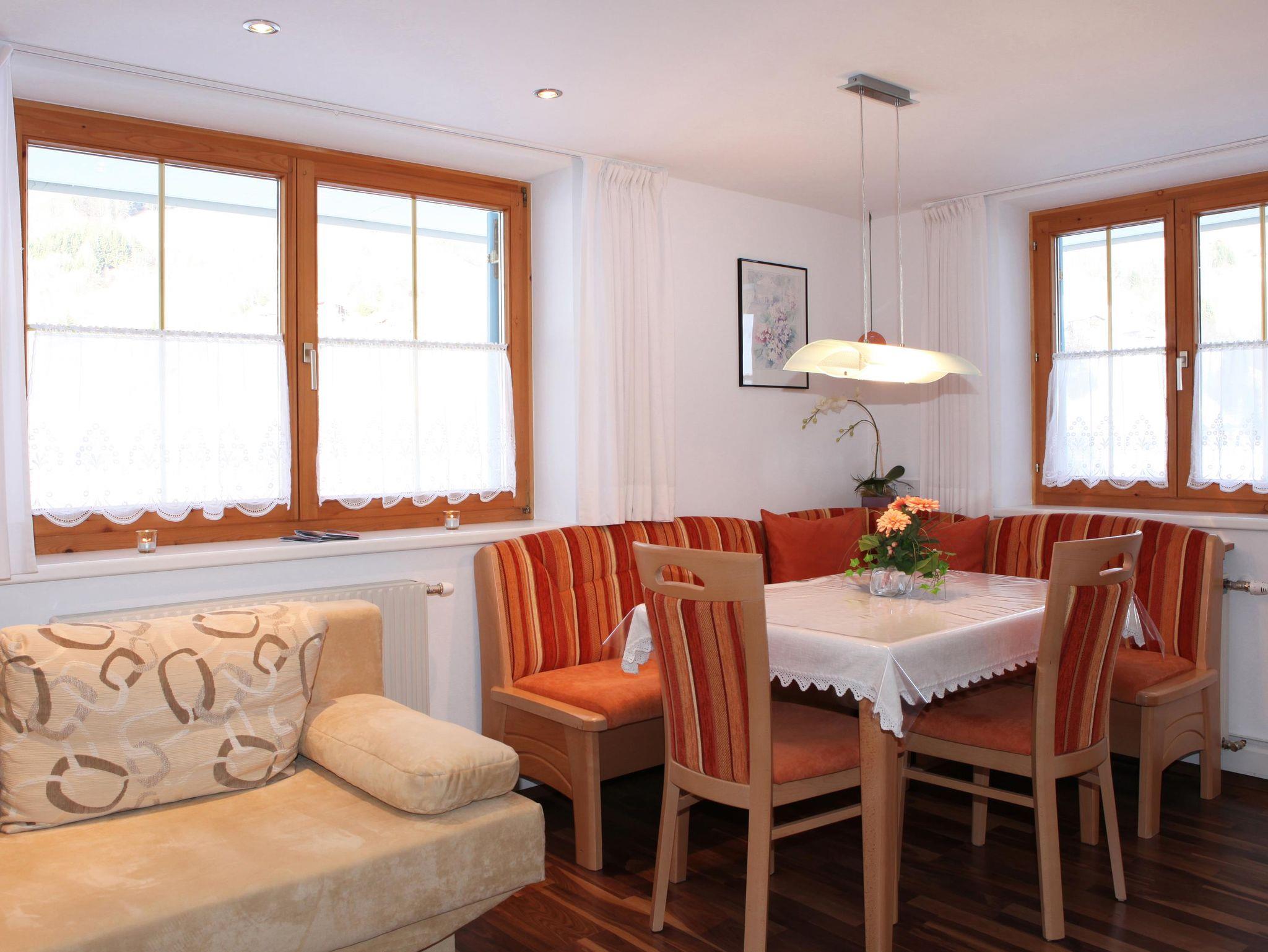FERIENWOHNUNG für 2 - 4 Personen ( 40m² im EG). Gemütliche neue Wohnküche mit ausziehbarer Liegecouch, komplett eingerichtet mit Toaster, Wasserkocher, Filter- und Senseo Kaffeemaschine für Pads, Geschirrspüler, Radio, Sat-TV, W-Lan gratis, 1 Dreibettzimmer mit TV, Dusche mit WC und Fön. Schiraum und Schischuhtrockenraum, Liegewiese, Terrasse mit Grillmöglichkeit.