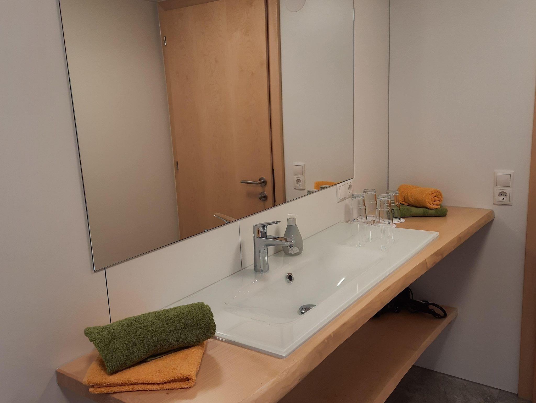 Unsere Ferienwohnung auf 65 m² besteht aus 2 Schlafzimmern, separatem WC, Wohnküche mit Sat-TV und W-Lan, einem Dampfbackofen, Geschirrspüler, Kapselkaffeemaschine, Wasserkocher sowie einem Toaster. Ein Haarfön, allergikerfreundl.Bettwäsche, Geschirrtücher, Hand- und Duschtücher sind ebenfalls vorhanden. Unsere Fußbodenheizung sorgt für wohlige Wärme. Die Terrasse im Grünen lädt zum Verweilen ein