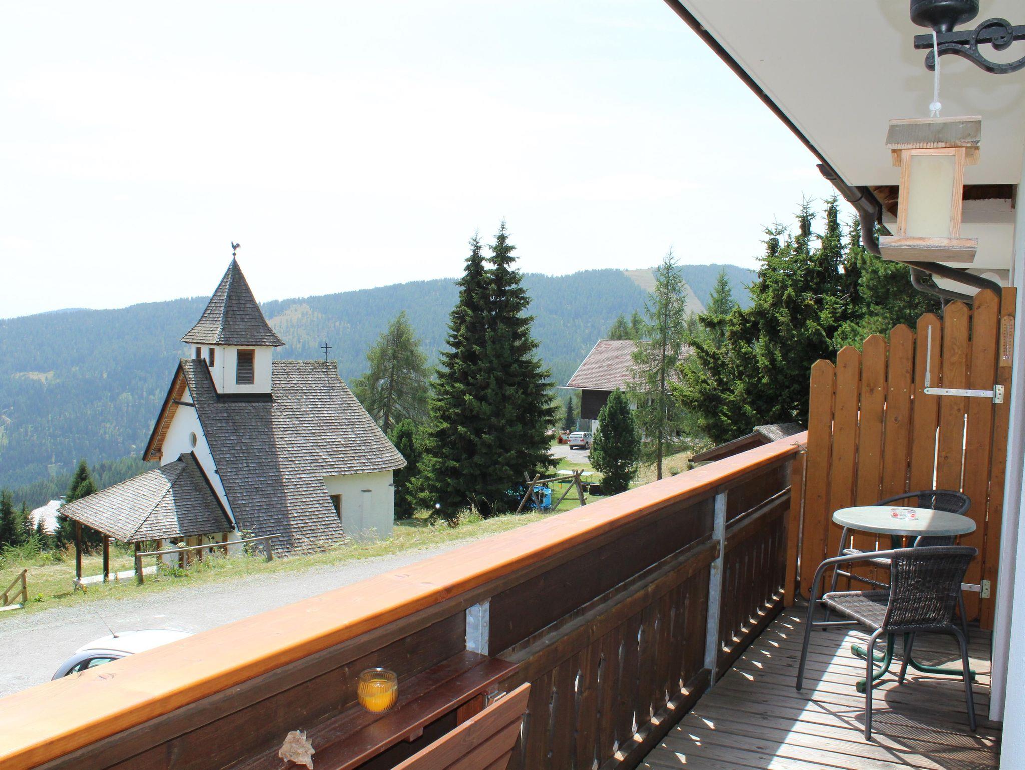 Unser Appartement für bis zu 6 Personen befindet sich im 1.Stock der Jagerhuettn mit Südbalkon und Panoramablick auf die Karawanken.