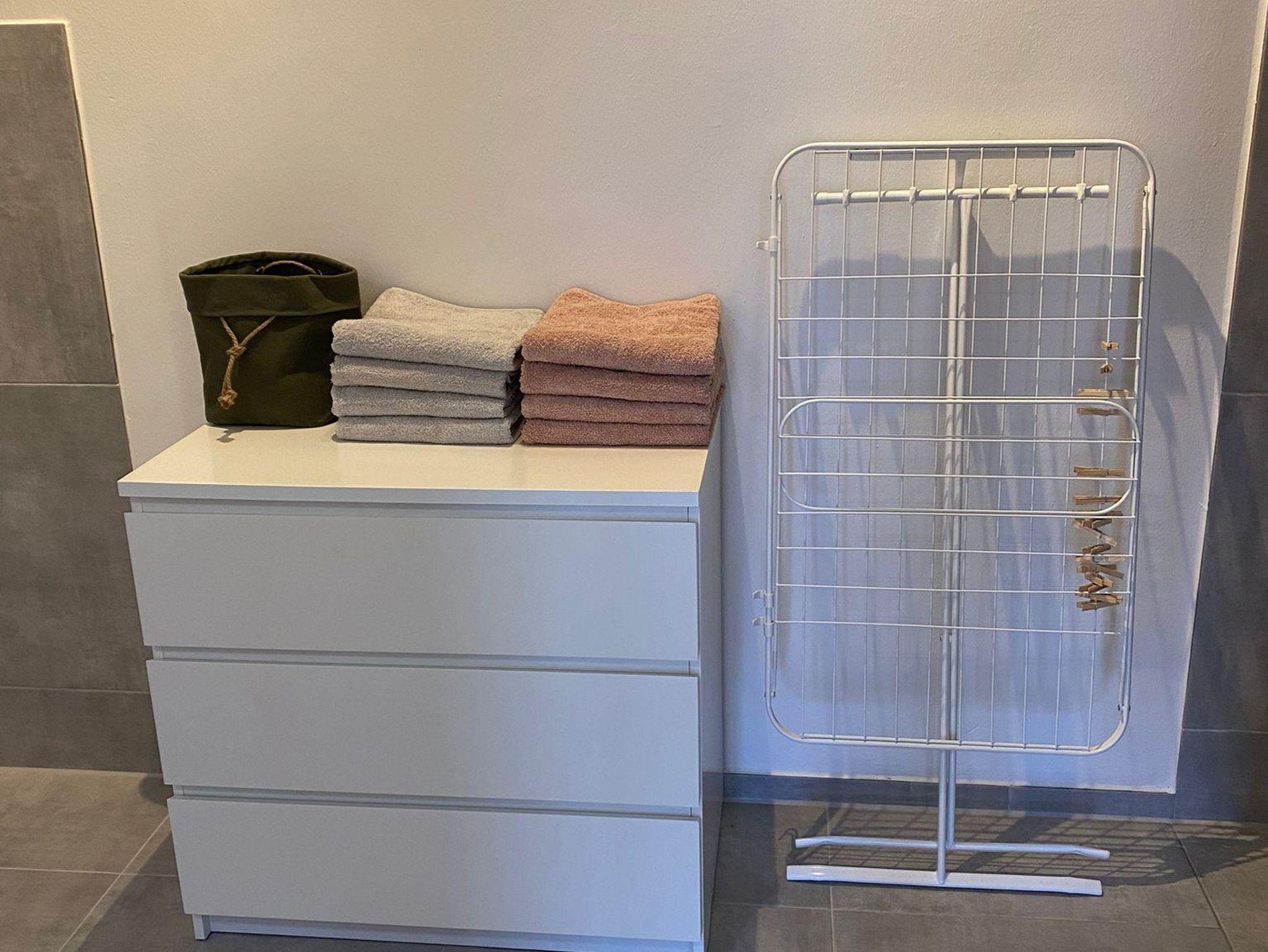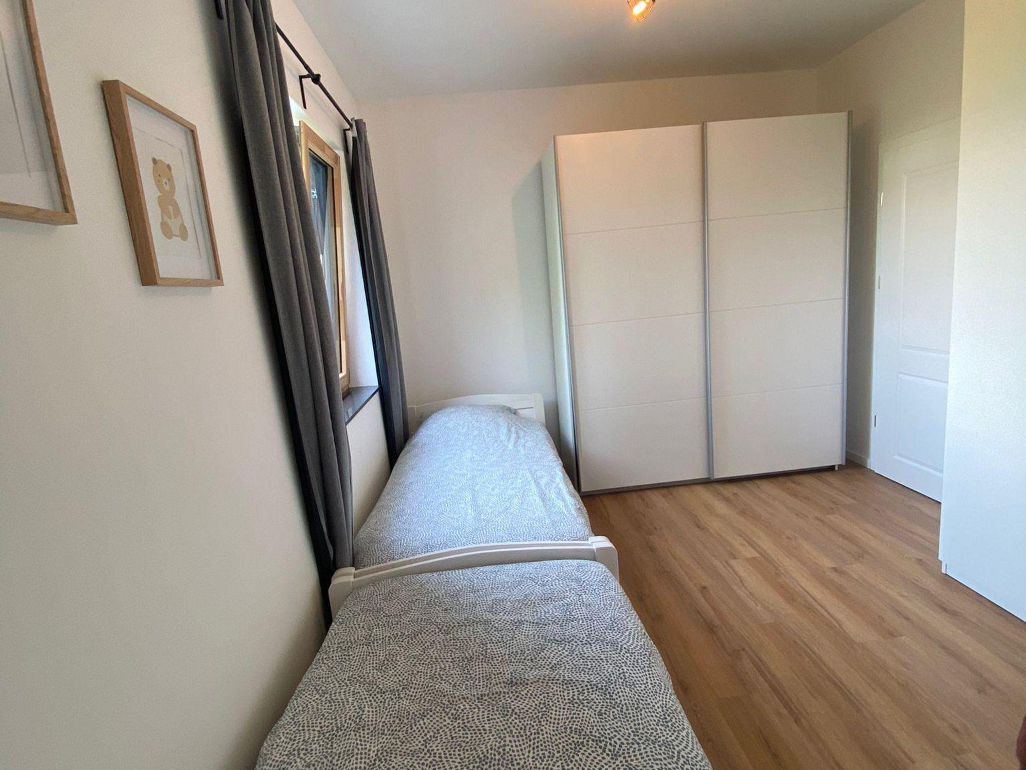 Es gibt 2 geräumige Schlafzimmer mit ausreichend Stauraum. 1 Zimmer mit einem Doppelbett und 1 Zimmer mit 2 Einzelbetten. Das Badezimmer ist mit einer Waschmaschine ausgestattet.