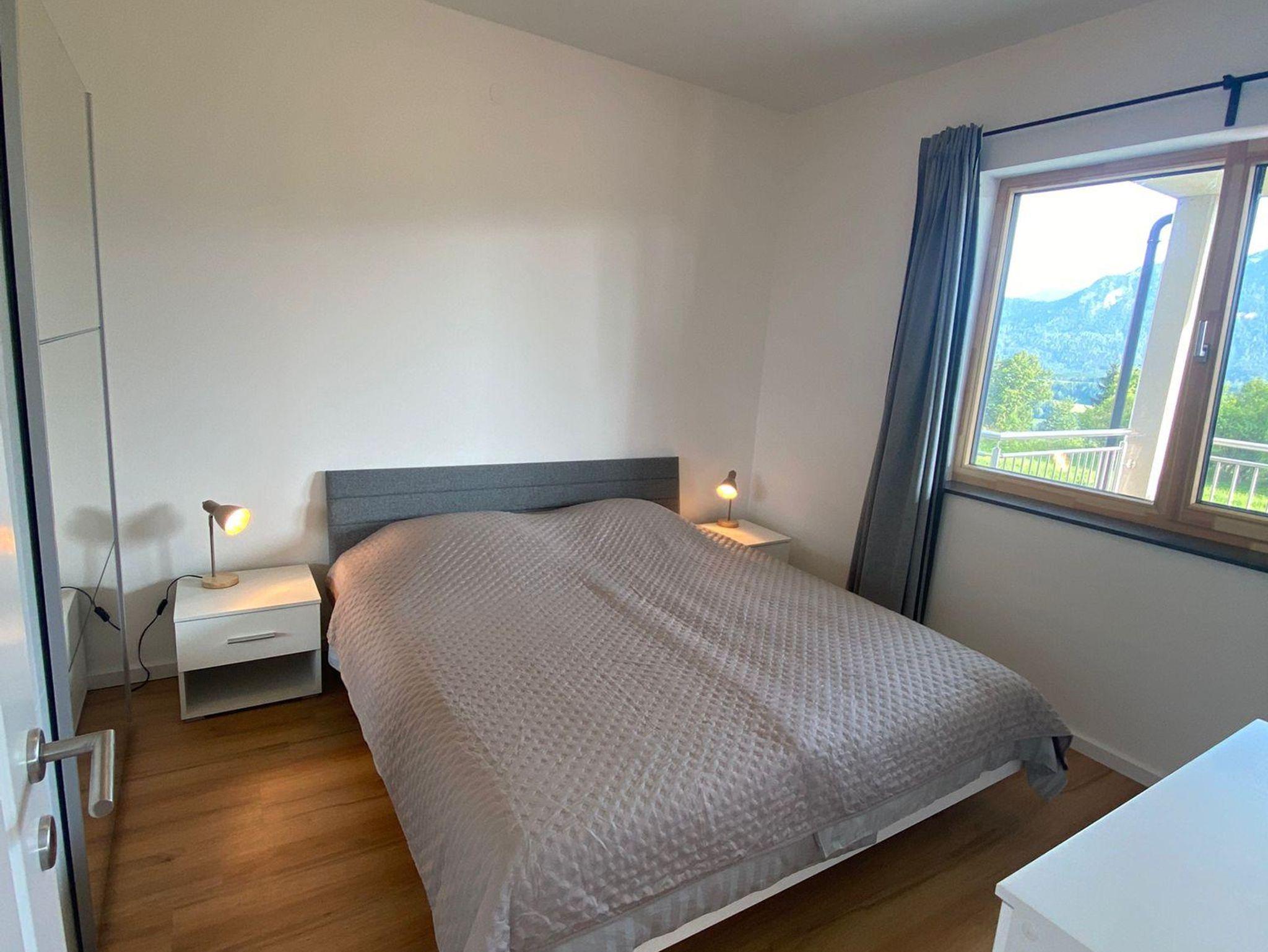 Vom Wohnzimmer und dem großzügig überdachten eigenen Balkon aus kann man sich entspannen und die wunderschöne Aussicht auf die Karawanken genießen.
