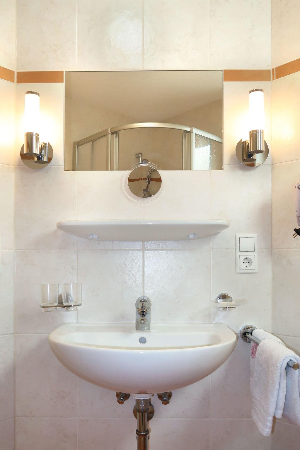 "Bergkristall", 3-room apartment 70 m2, on the ground floor. Beautiful furnishings: living/sleeping room with 1 double sofabed, dining nook, satellite TV, radio and CD-player. 1 double bedroom with shower/WC. 1 double bedroom. Open kitchen (oven, dishwasher, 4 ceramic glass hob hotplates, toaster, microwave, electric coffee machine). Shower/WC. Heating. Carpet. Terrace. Terrace furniture. Facilities: safe, children's high chair, baby cot. Internet (WiFi, free).