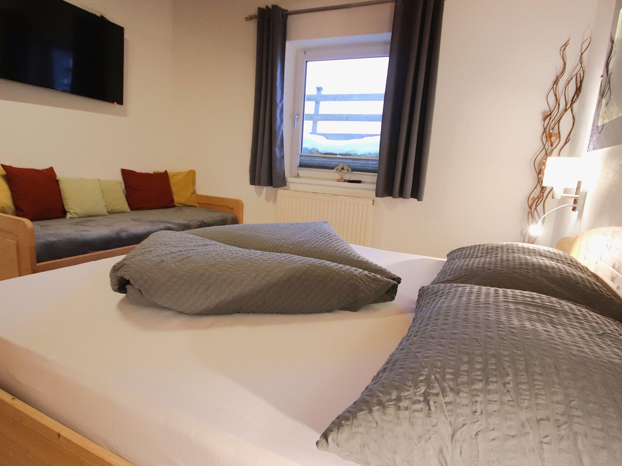 "Piz Mundin", 3-room apartment 67 m2 on 2nd floor, south-west facing position. Modern and cosy furnishings: living/sleeping room with sloping ceilings with 1 double sofabed, dining nook and satellite TV. Exit to the balcony. 1 double bedroom. Exit to the balcony. 1 double bedroom. Open kitchen (oven, dishwasher, 4 ceramic glass hob hotplates, microwave, electric coffee machine). Bath/shower/WC. Heating. Balcony. Balcony furniture. Facilities: safe, children's high chair, baby cot. Internet (WiFi, free). Please note: smoke alarm. Additional TV in the back bedroom.