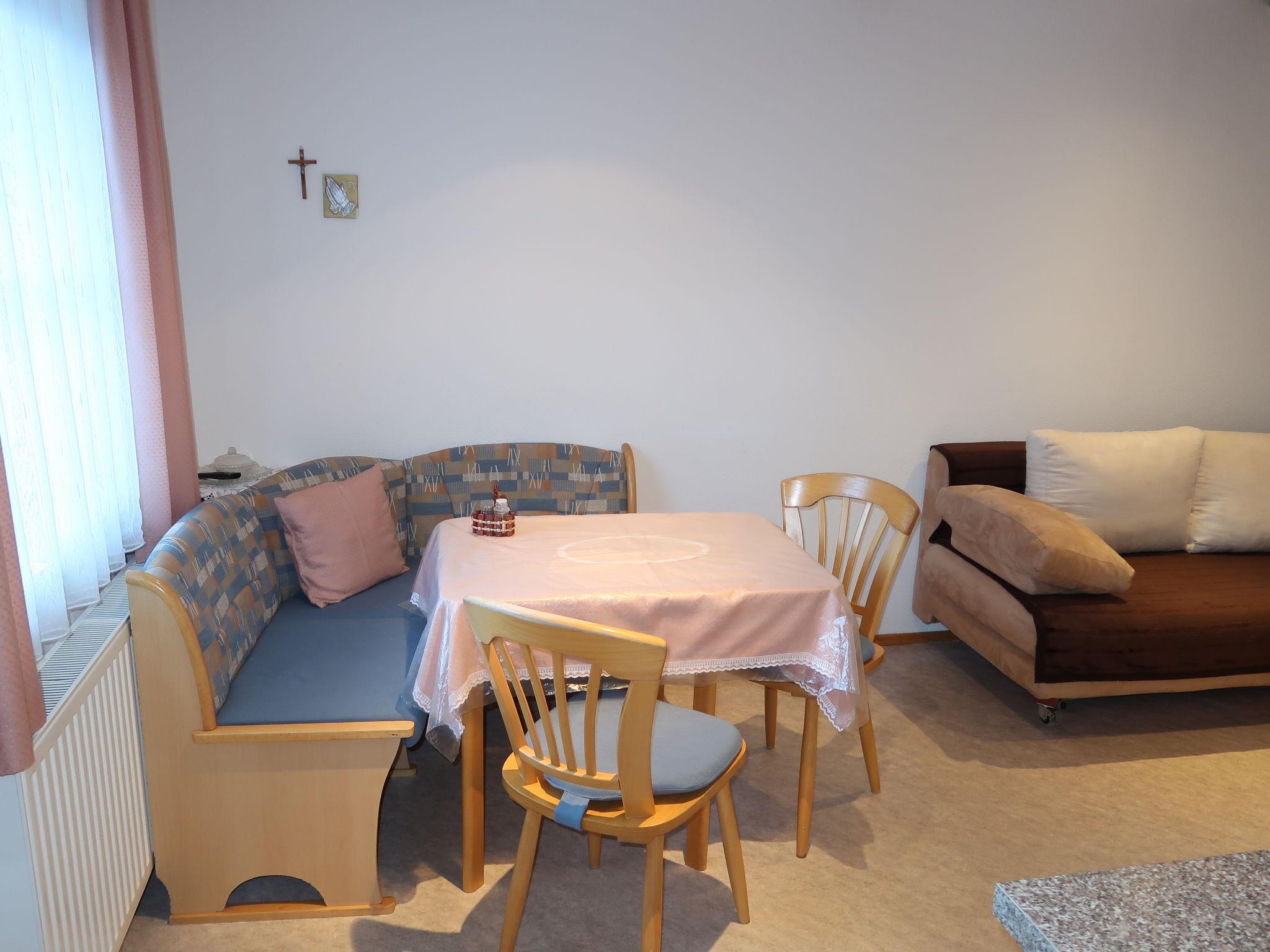 "Miriam", 2-room apartment 31 m2, on the ground floor. Living/sleeping room with 1 double sofabed (180 cm, length 180 cm), dining nook and satellite TV. 1 room with 1 double bed (180 cm, length 180 cm). Open kitchen (4 hot plates, oven, toaster, kettle, microwave, electric coffee machine). Shower/WC. Oil heating. Carpet. Facilities: Internet (WiFi, free). Please note: maximum 2 pets/ dogs allowed. Private entrance.